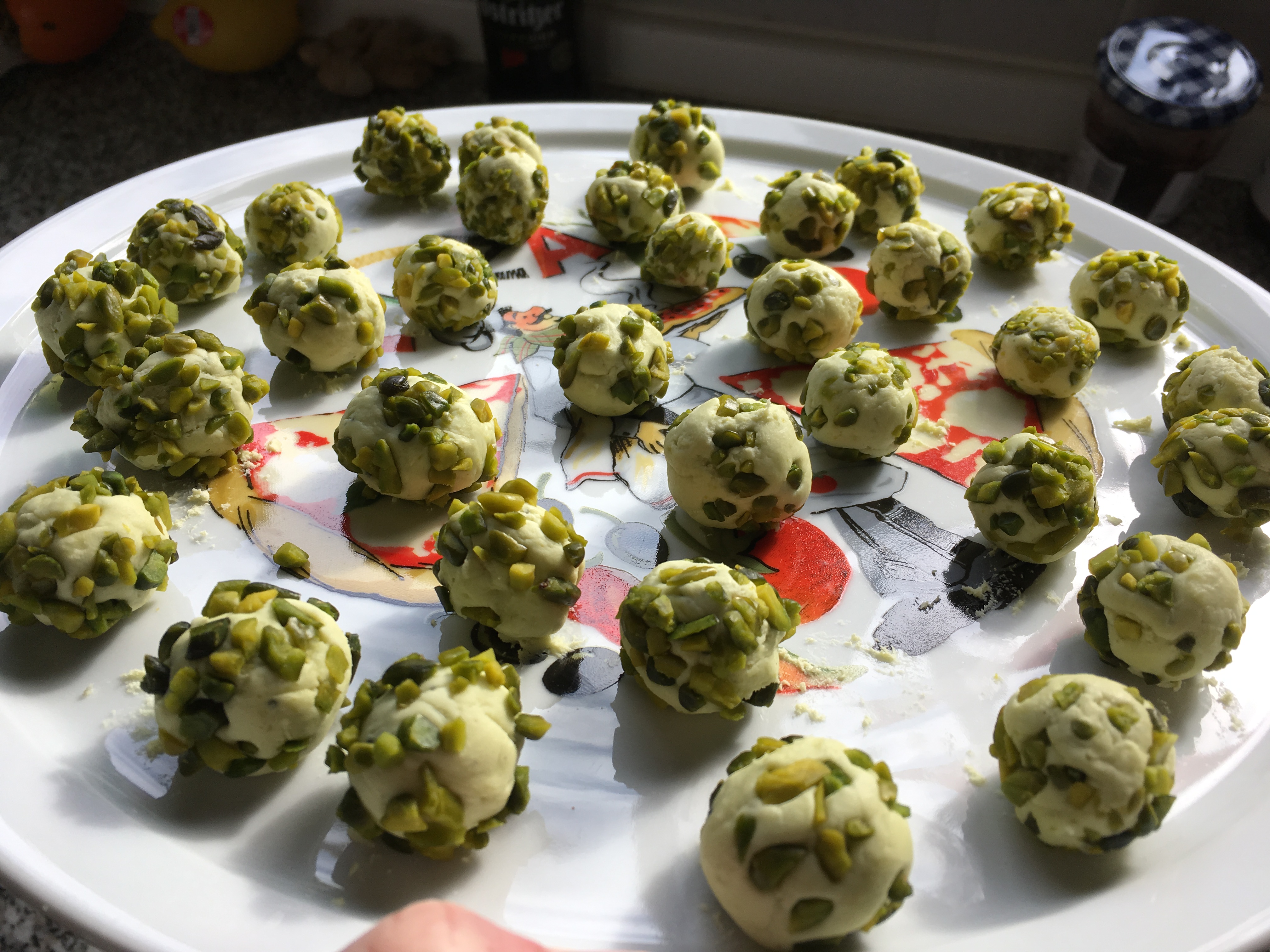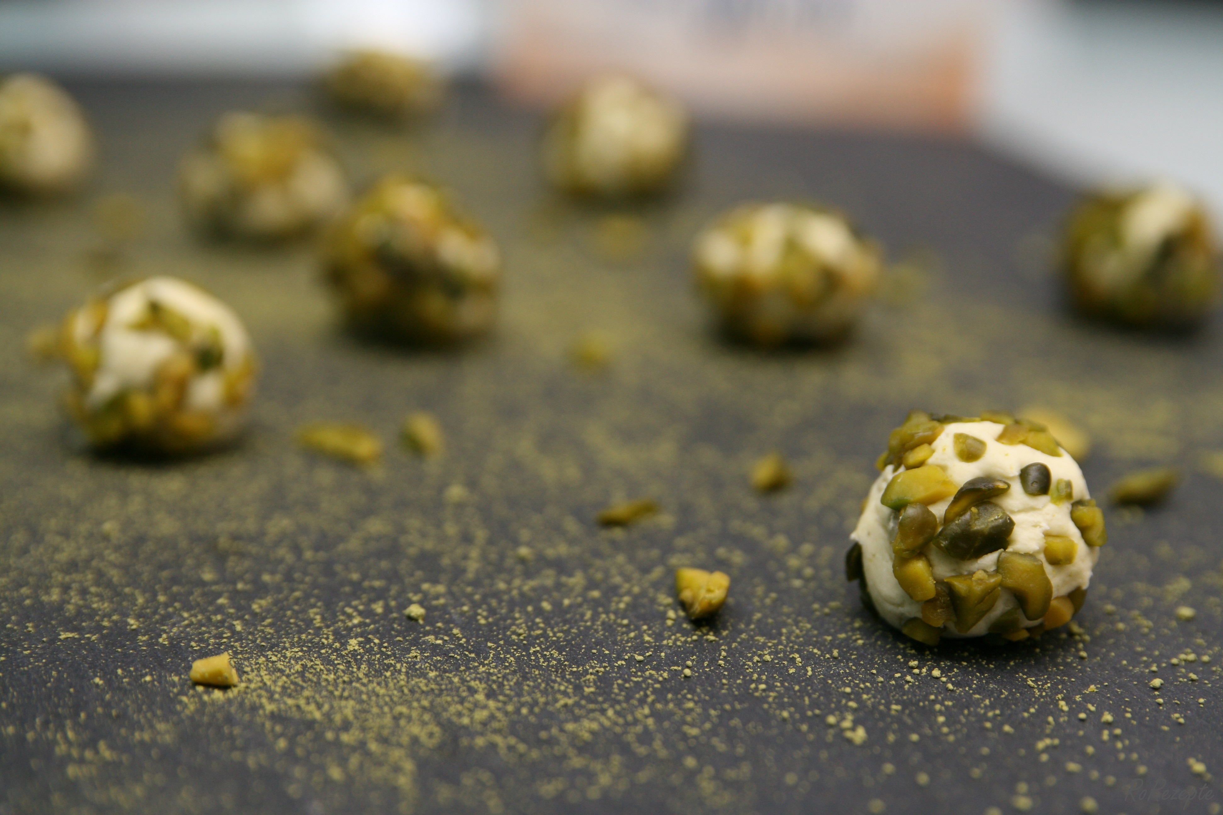 Kugeln formen, in Pistazie wälzen Kugeln formen, in Pistazien wälzen kühlen