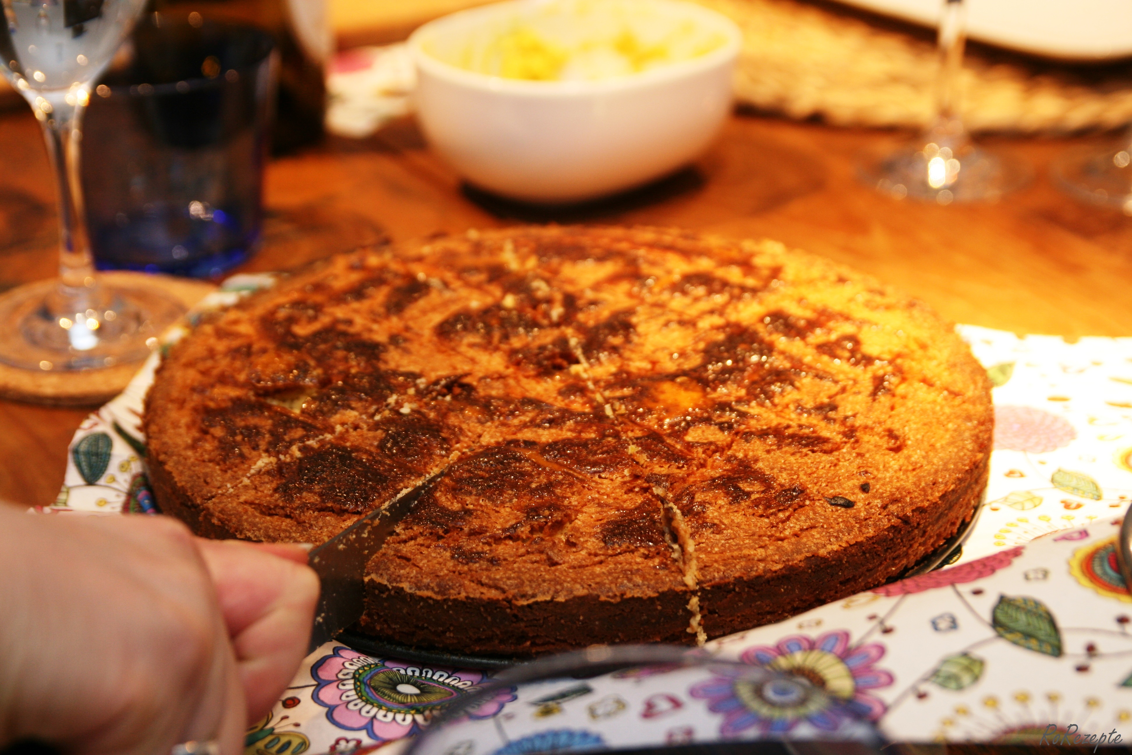 Umfüllen - Mit einer Gabel ein rautenförmiges Muster in die Oberfläche ritzen und mit Eigelb bestreichen. Etwa 45 Minuten bei 180° backen, abkühlen lassen und erst dann aus der Form nehmen.