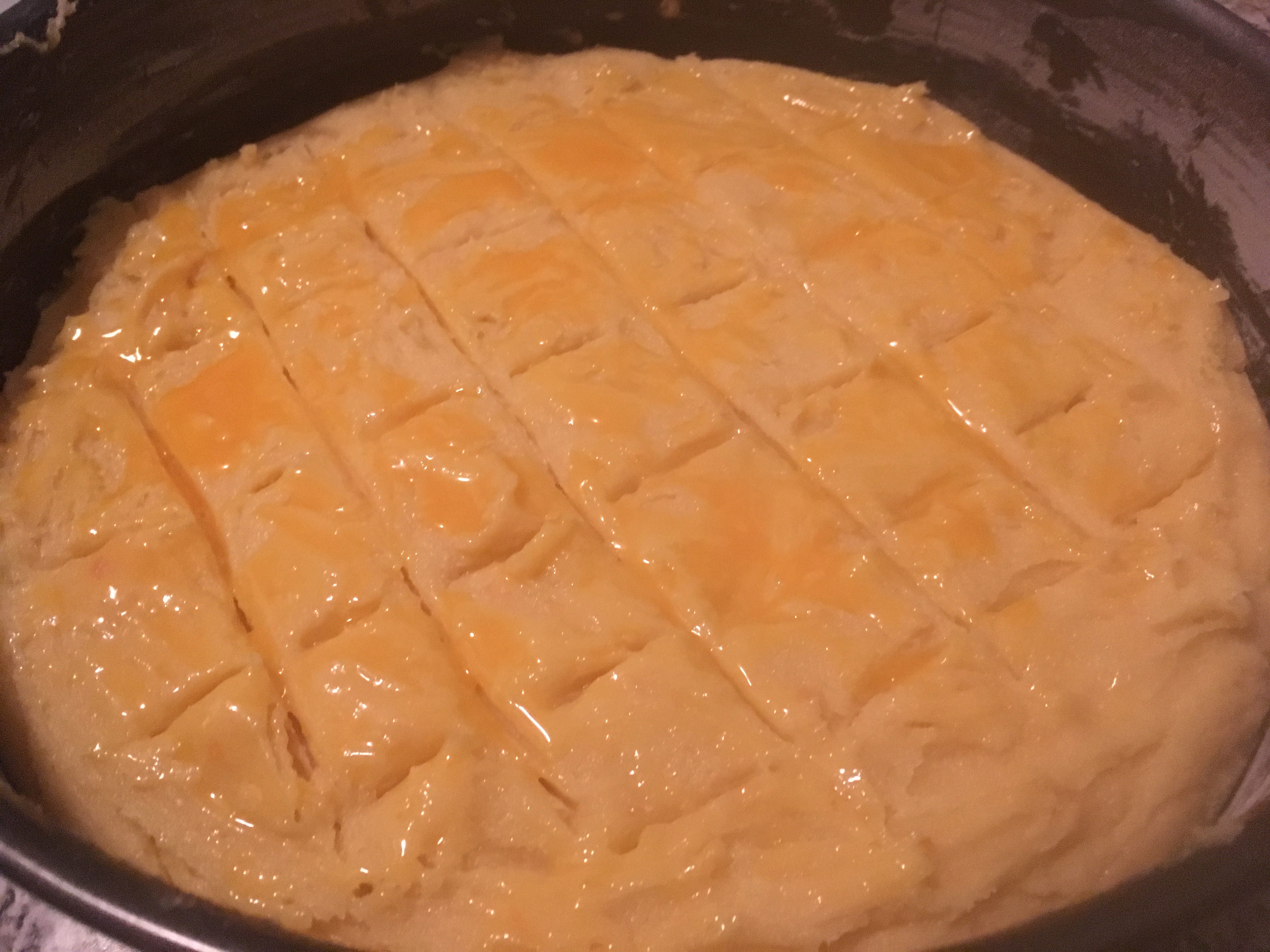 Rautenförmiges Muster Eigelb bestreichen - Dieser Kuchen ist lange haltbar und wird mit der Zeit immer besser. Er wird normalerweise zum Kaffee serviert, schmeckt aber auch toll zu einem Glas Cidre.