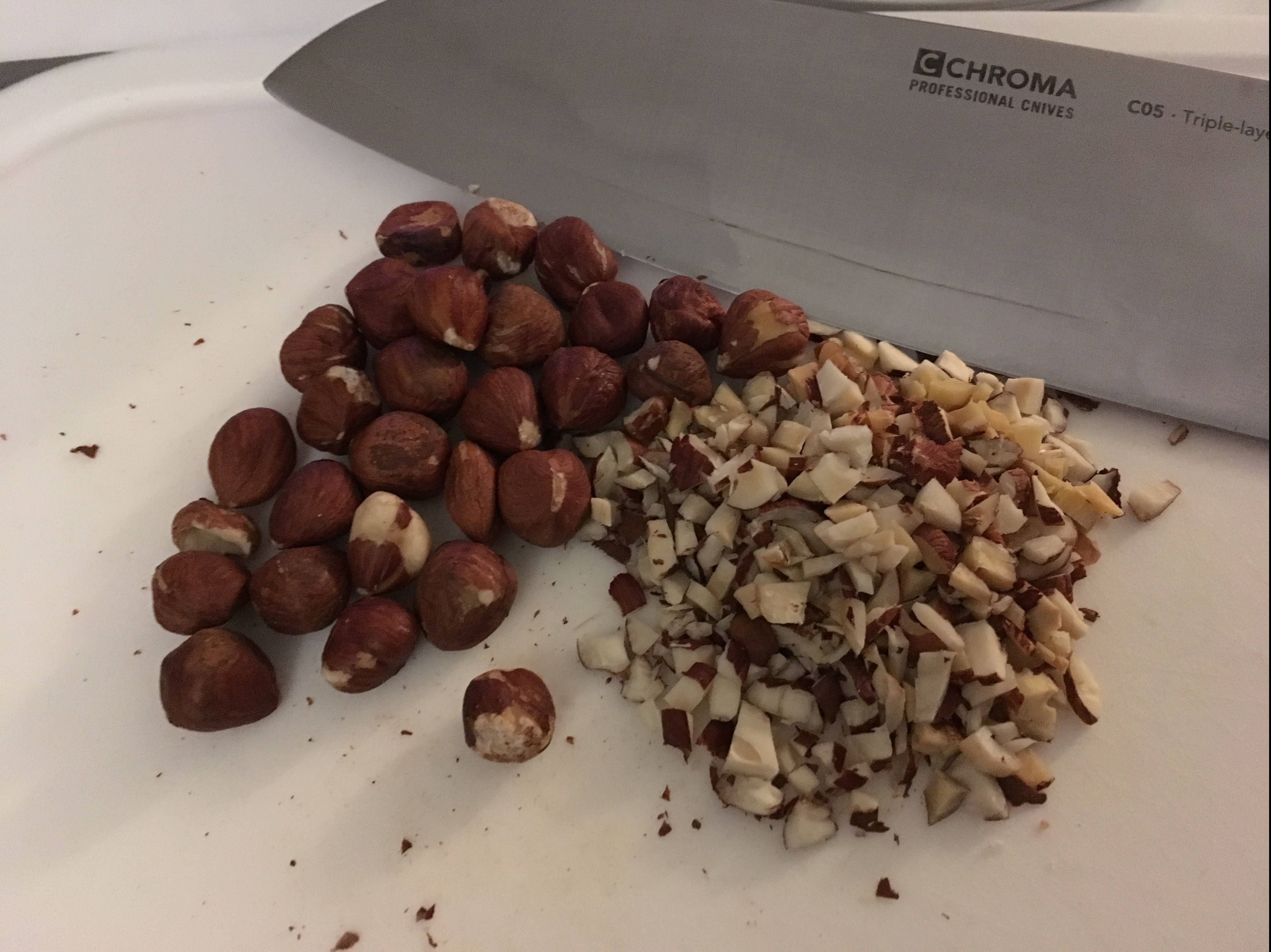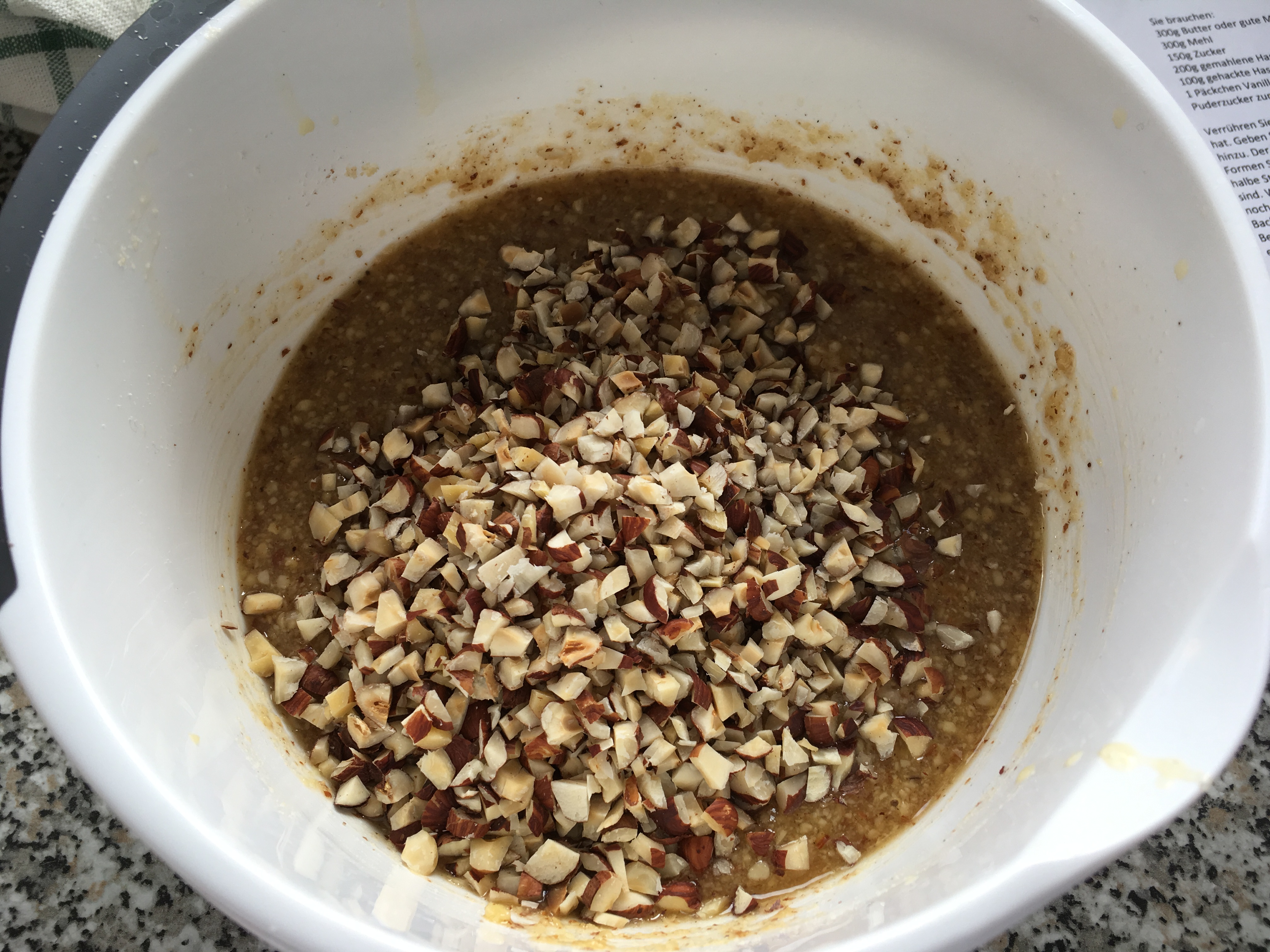- Wenn ihr keine gehackten Haselnüsse bekommt, sondern nur Ganze, solltet ihr als erstes hacken 🙂