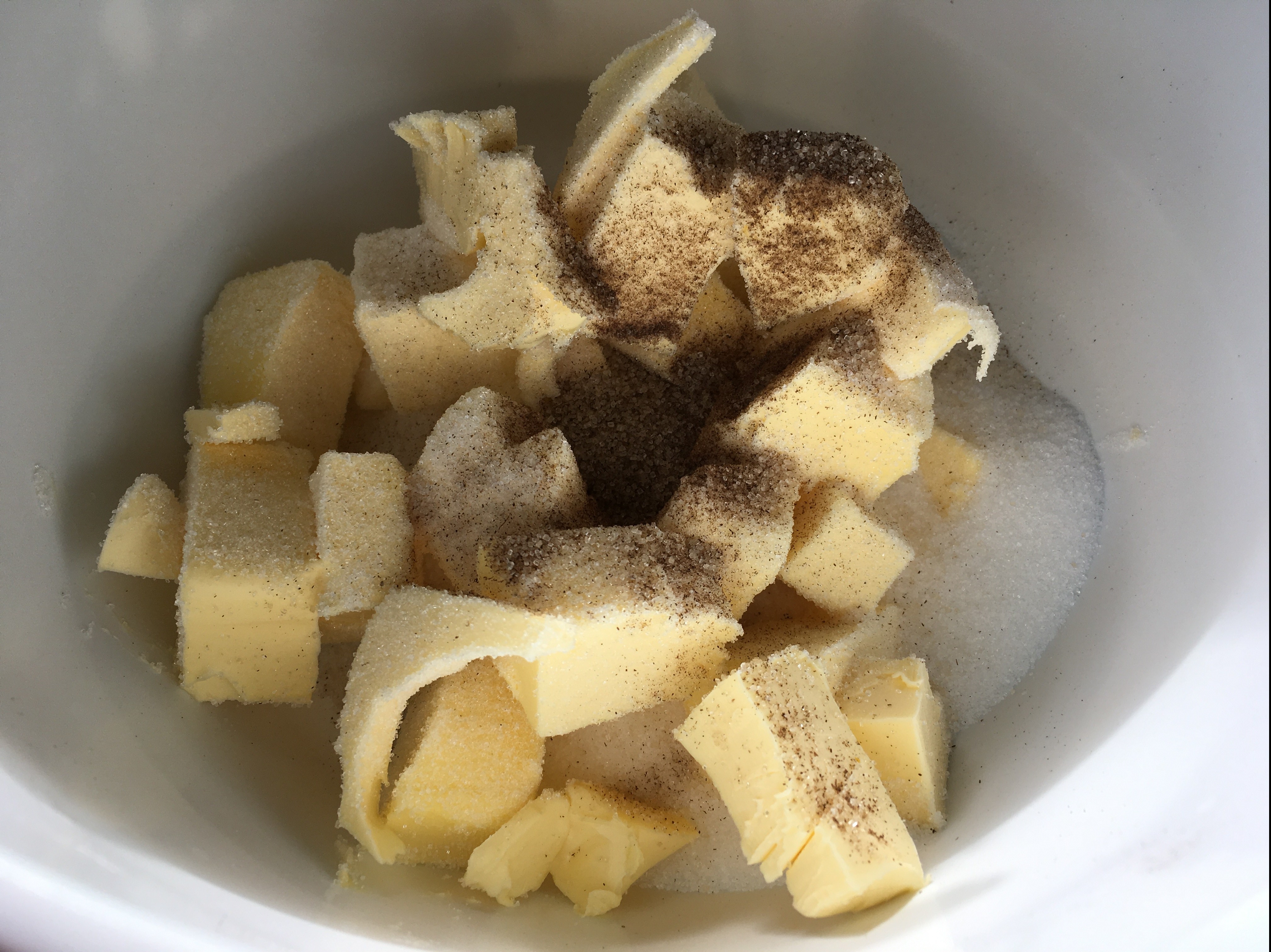 - Verrühren Sie die Butter mit dem Zucker und Vanillezucker, bis der Zucker sich vollständig aufgelöst hat.