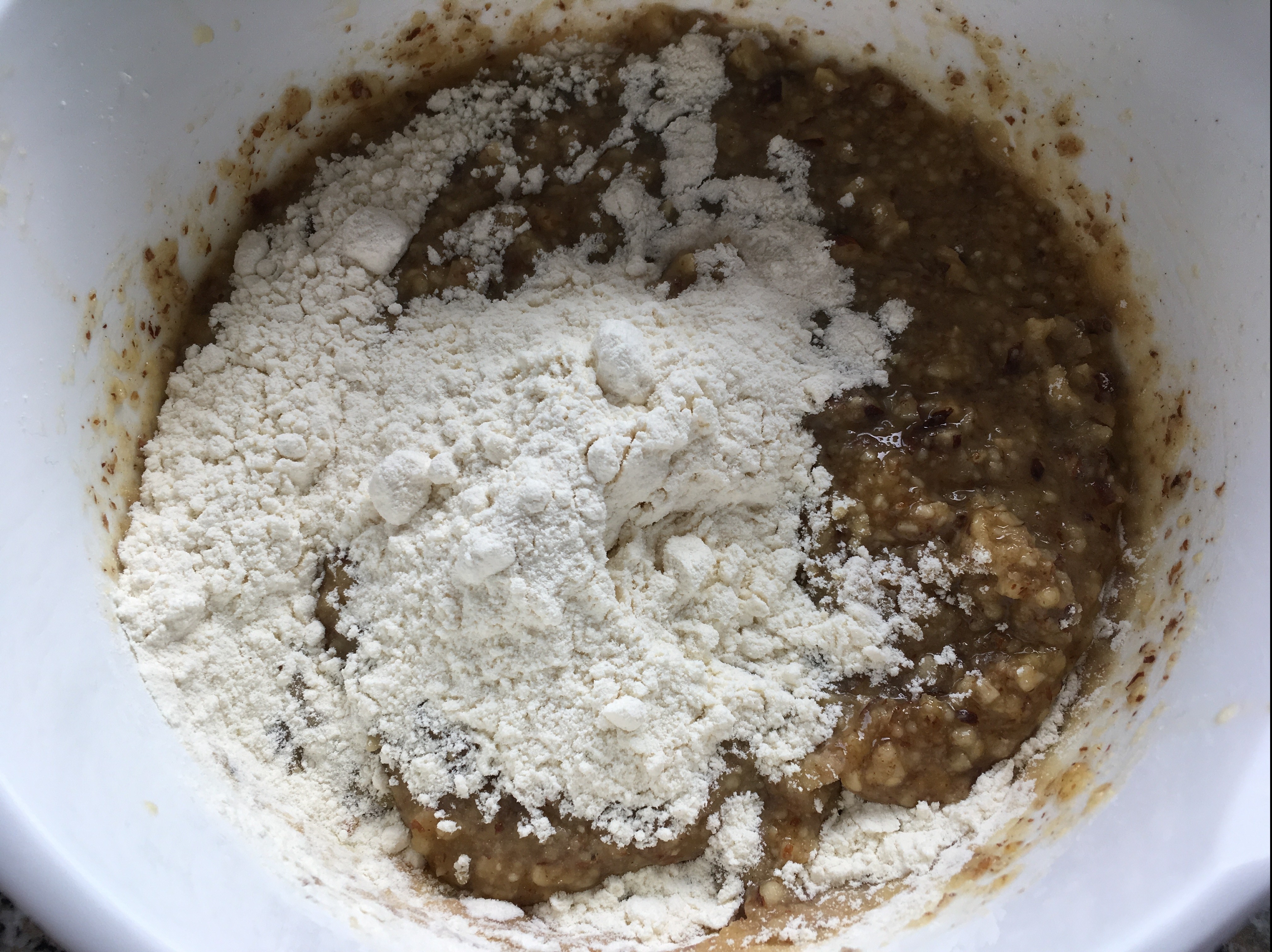 gemahlene Haselnüsse untergeben verrühren gehackte Haselnüsse zugeben - Zu guter Letzt fügen Sie das Mehl hinzu. Der Teig solle zäh, aber immer noch ein wenig »fluffig« sein.