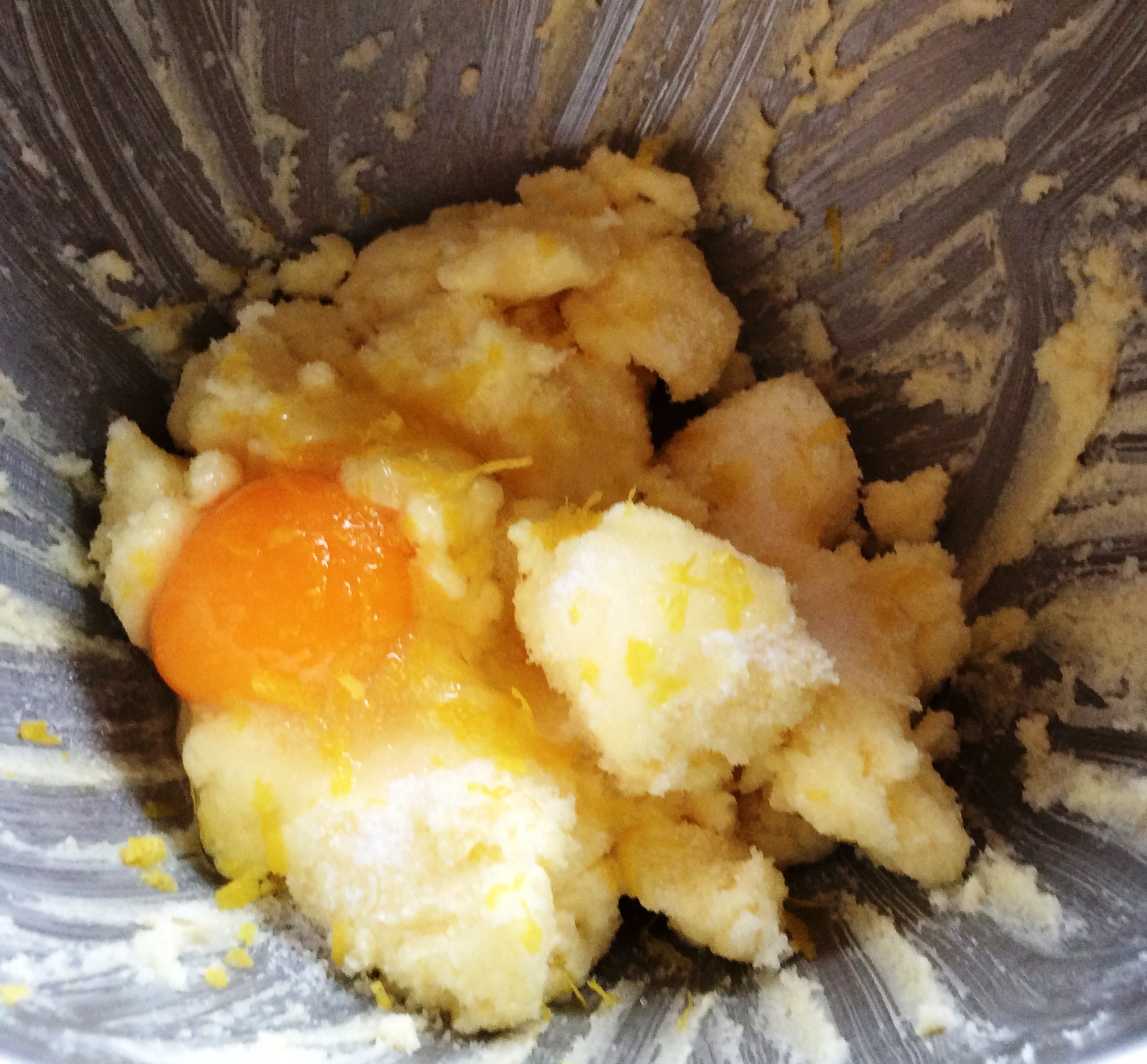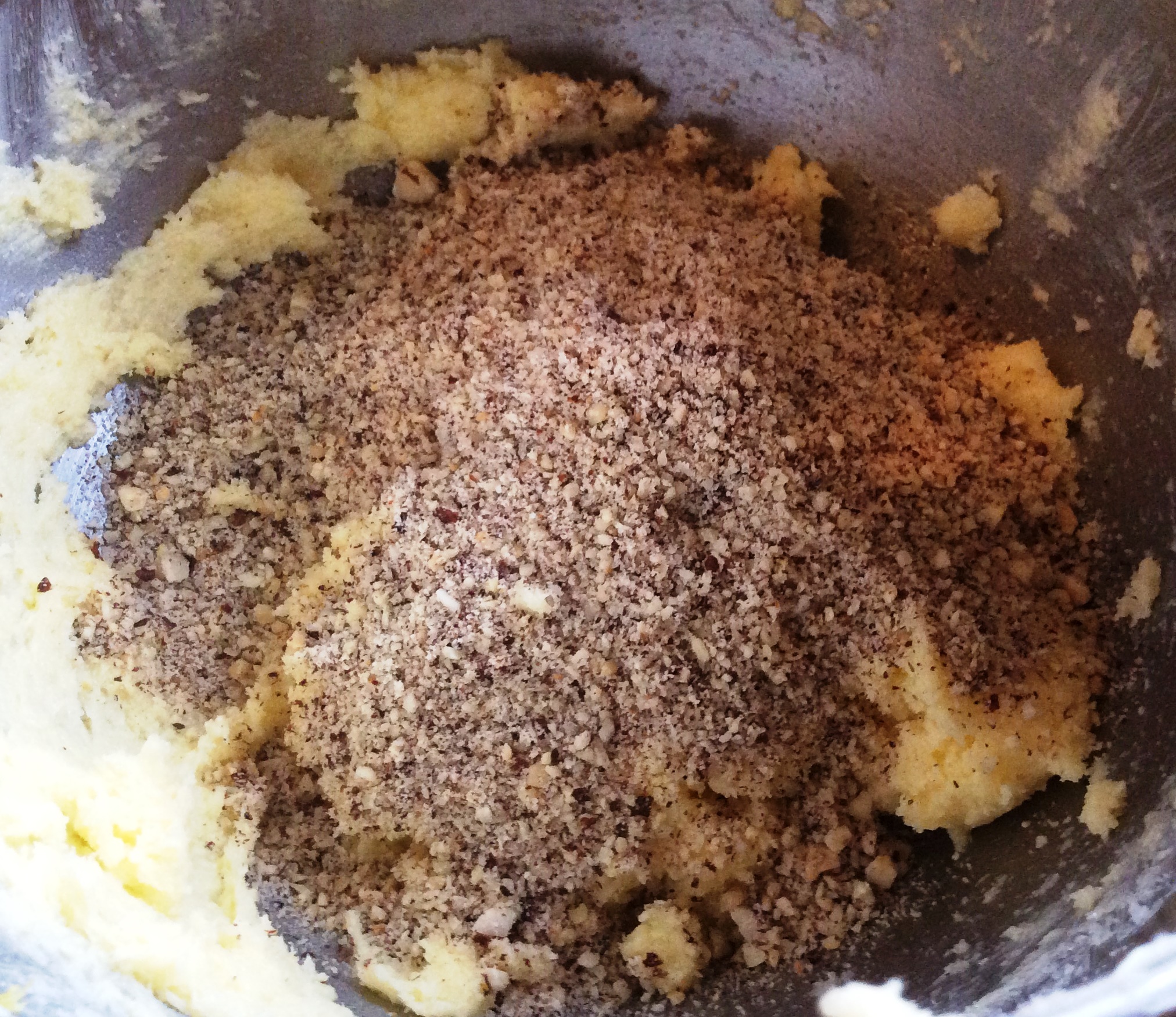 - Weiche Butter und Zucker gut verrühren, dann kommen nach und nach das Ei, Vanillezucker, Buttervanille, Zitronenabrieb und Nüsse dazu.