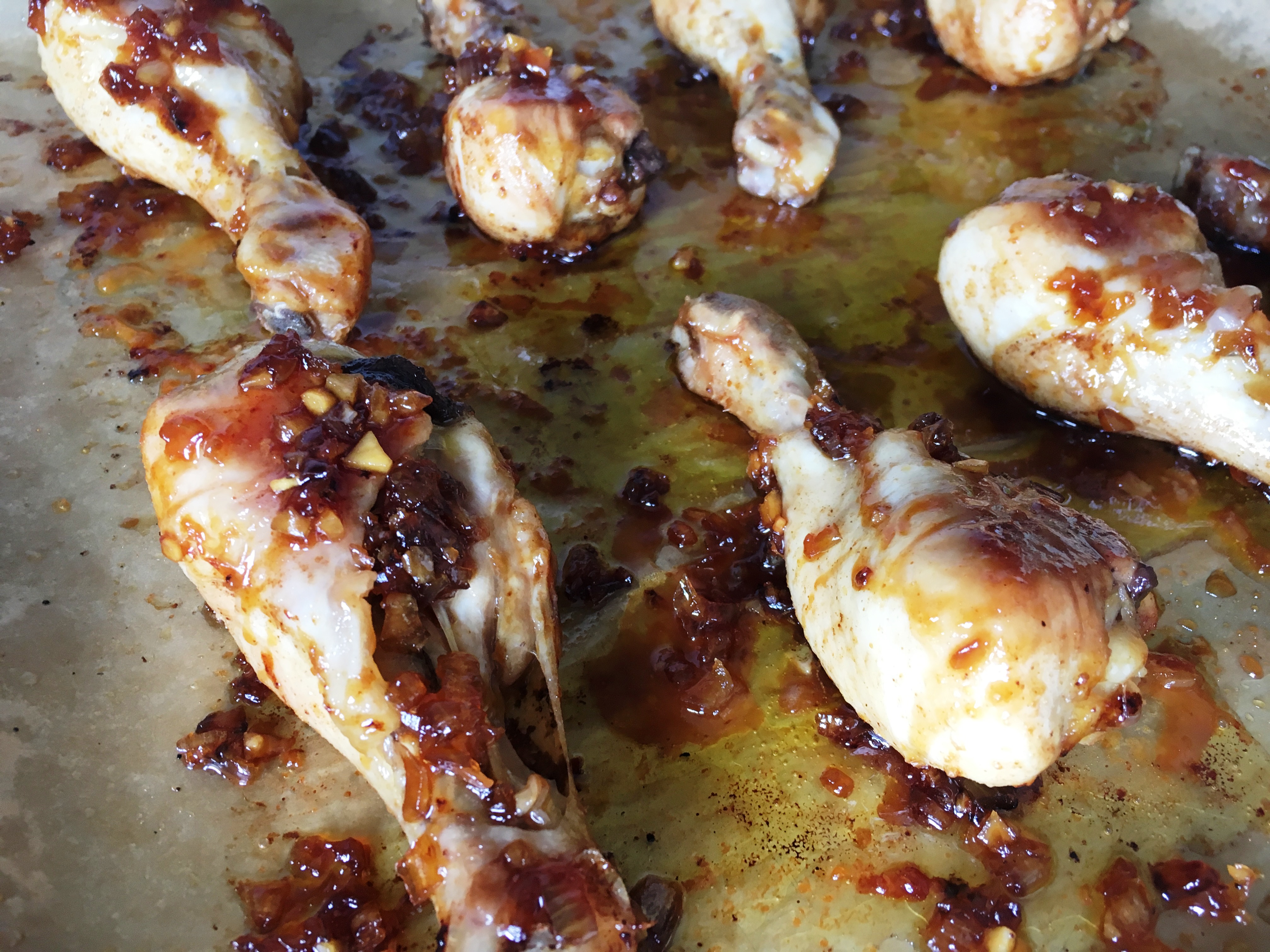 - Die Hähnchenflügel umdrehen und die andere Seite bestreichen. Weitere 5-10 Minuten backen.