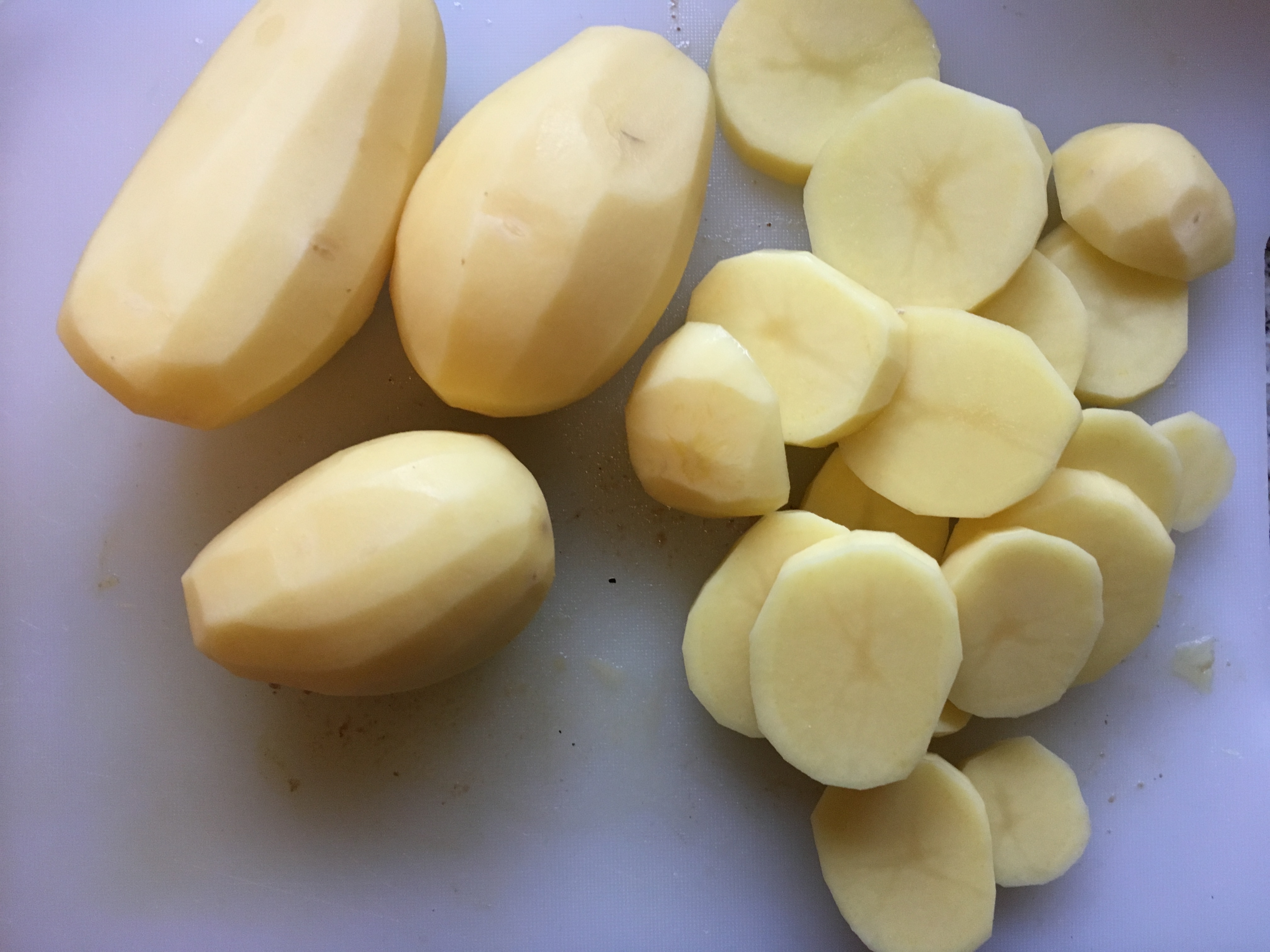köcheln - Inzwischen schäle ich die Kartoffeln und schneide sie in etwa 1 cm dicke Scheiben.