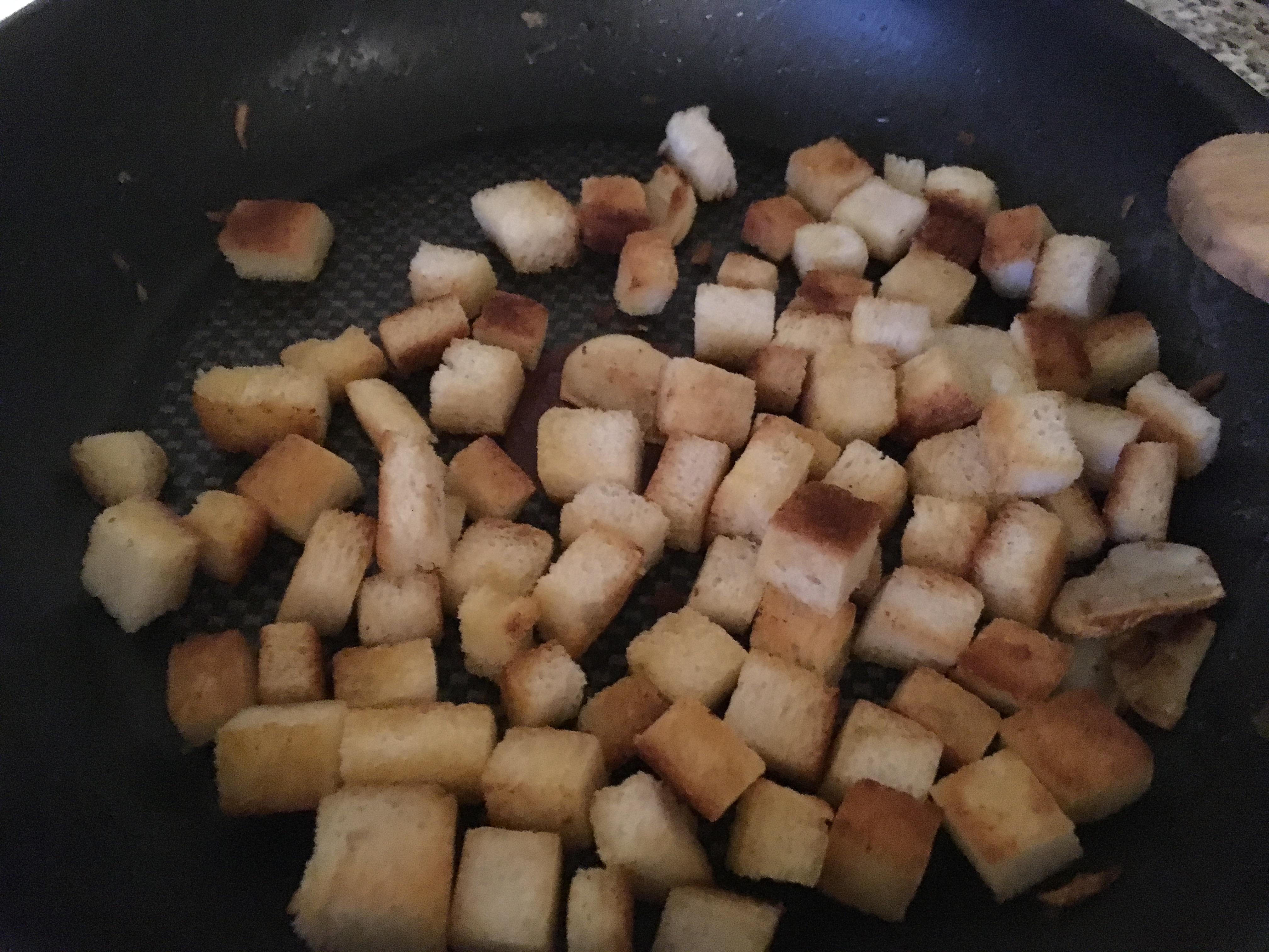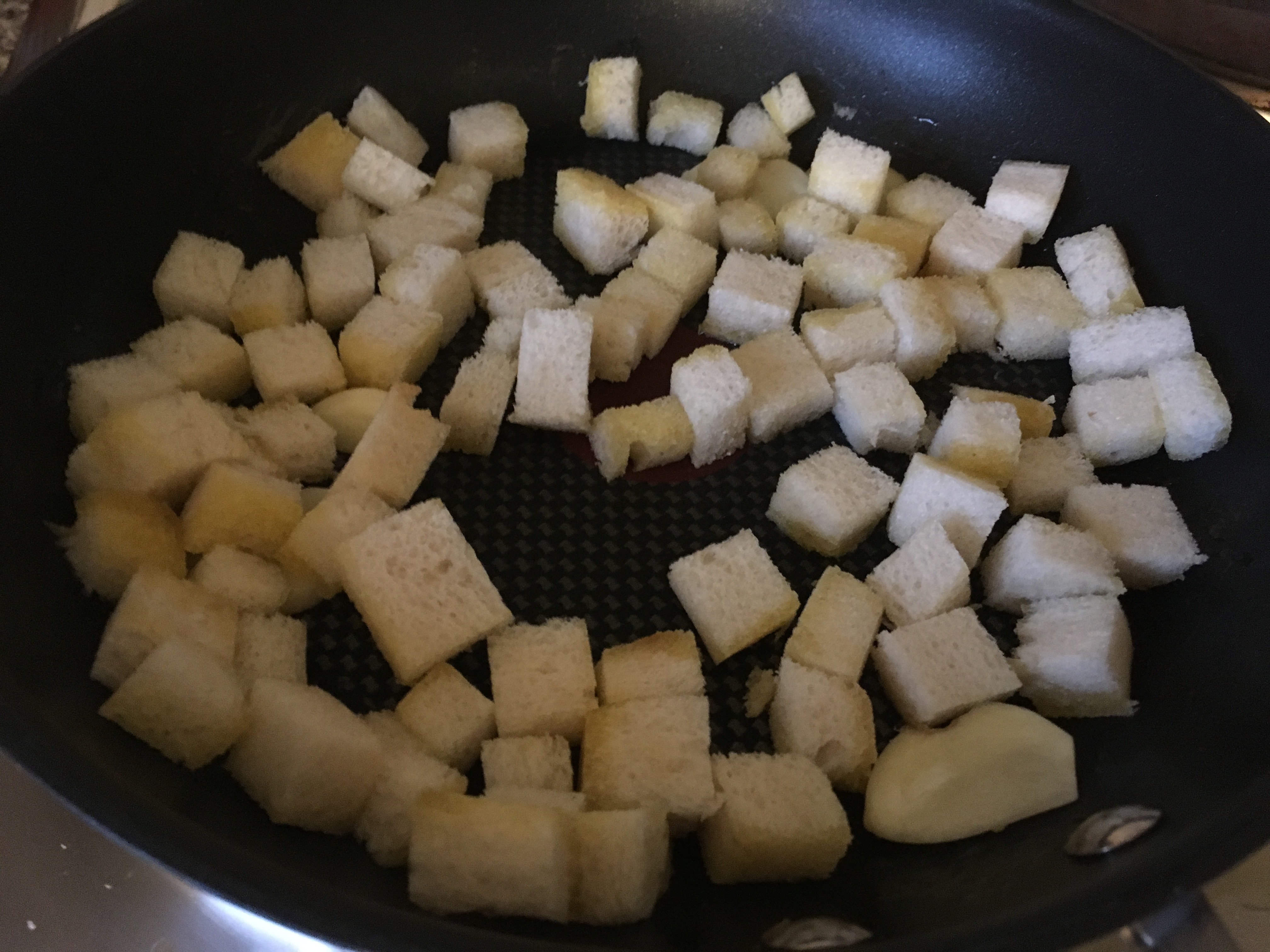 Toastbrot und Knoblauch anrösten Croutons
