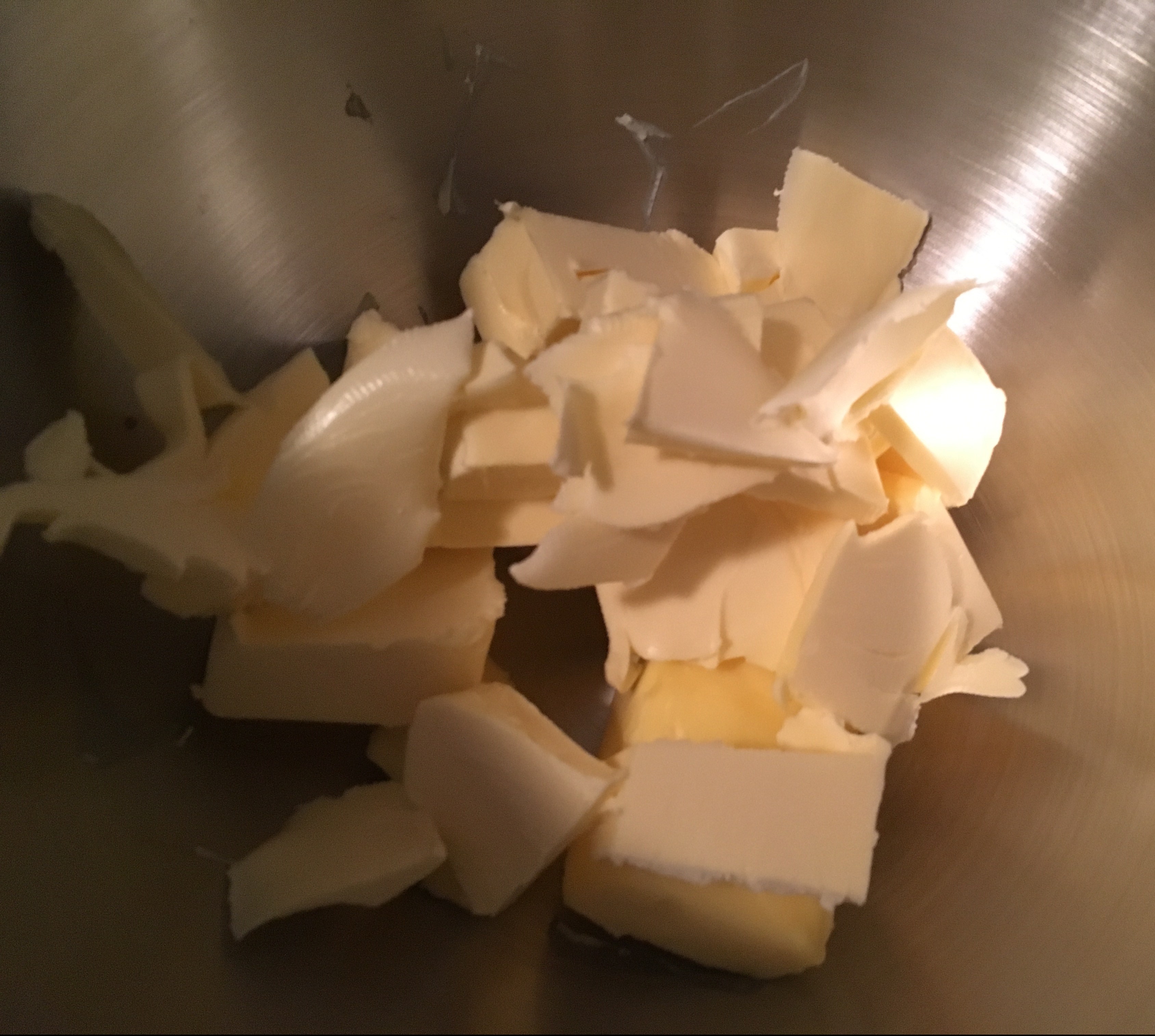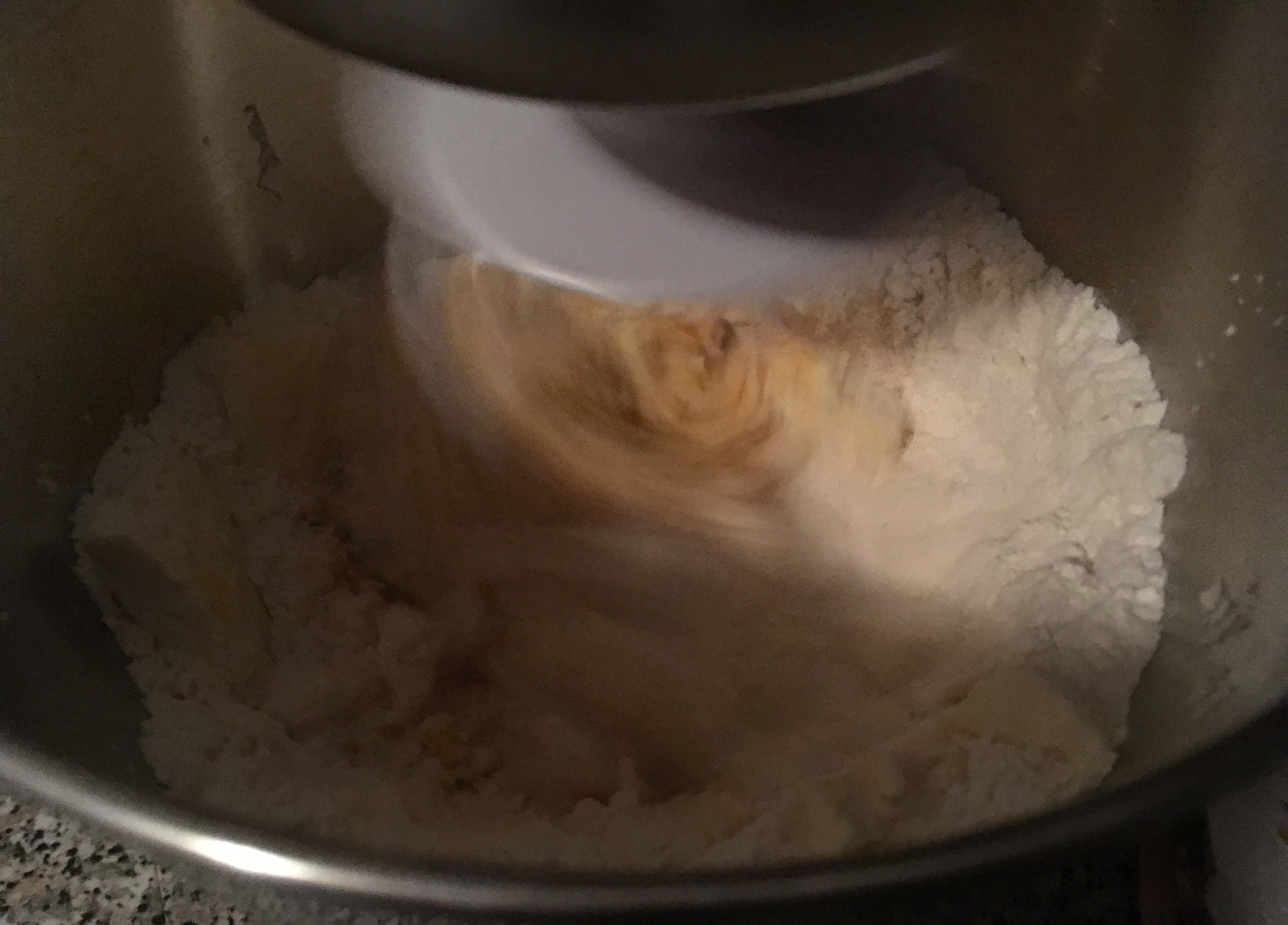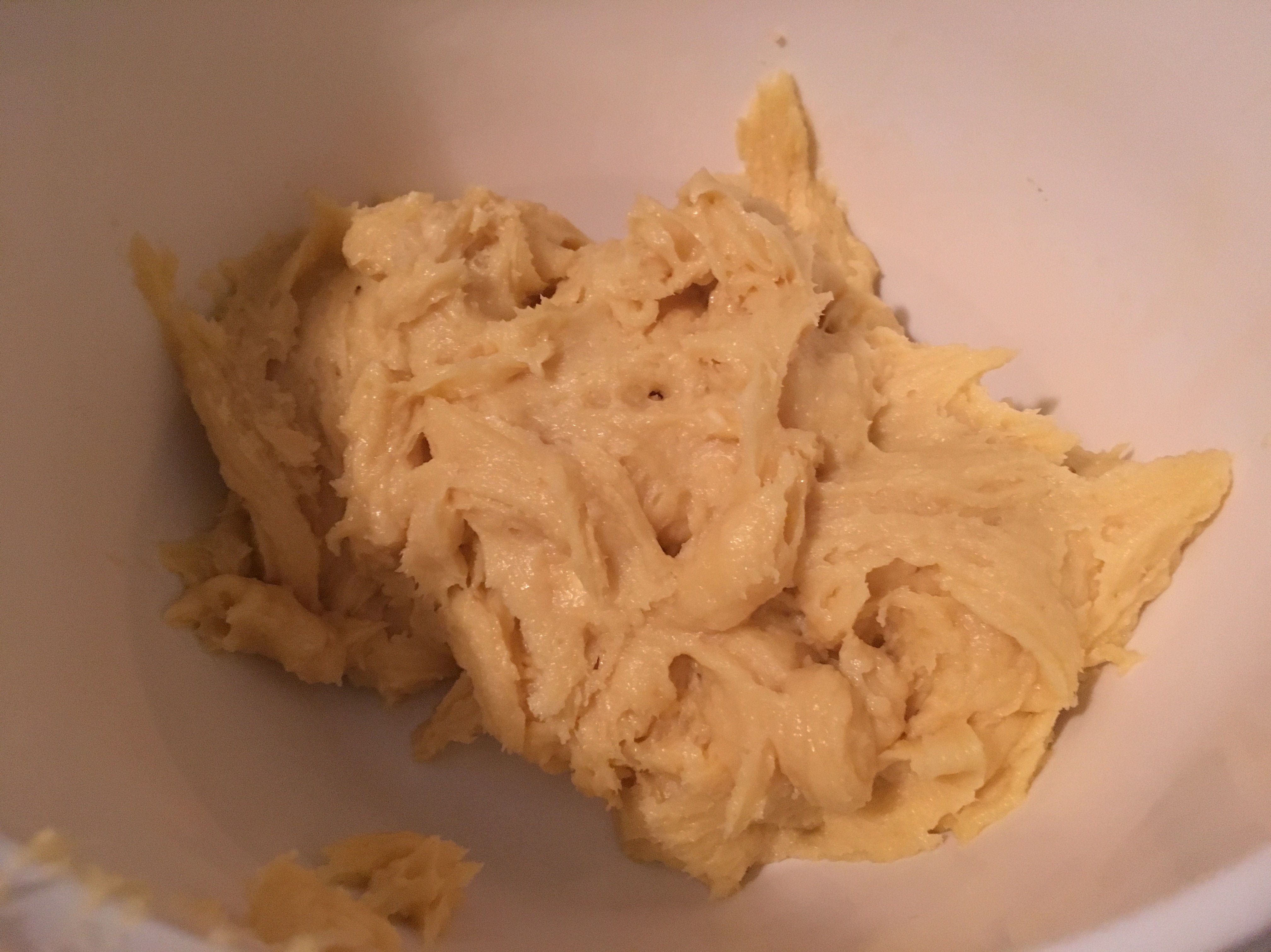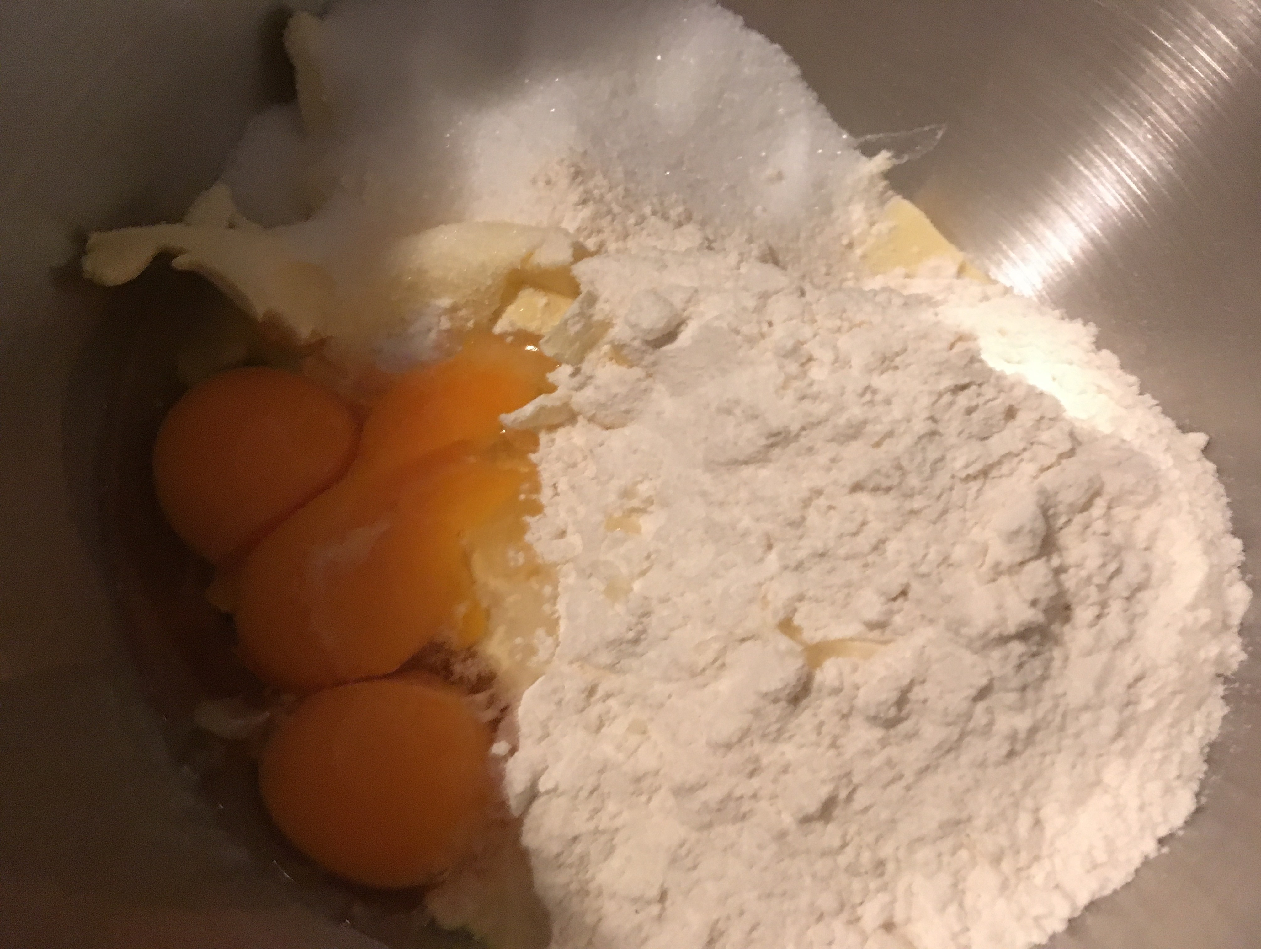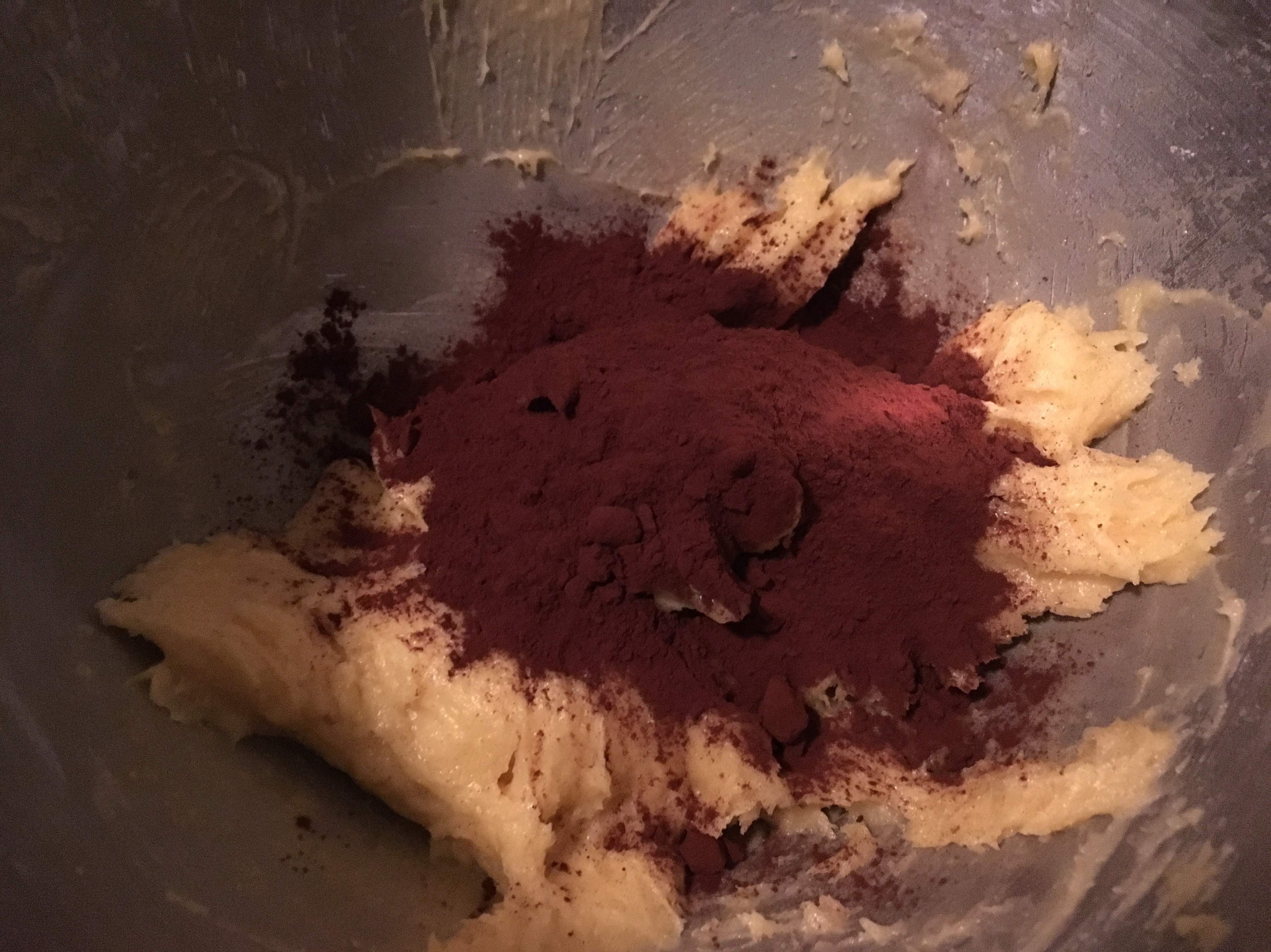 Butter Teigzutaten Vermengen - Danach die Hälfte des Teigs in eine separate Schüssel umfüllen. Unter die eine Hälfte das Kakaopulver rühren. Gesamtteigmenge 790g, Hälfte demnach 395g.