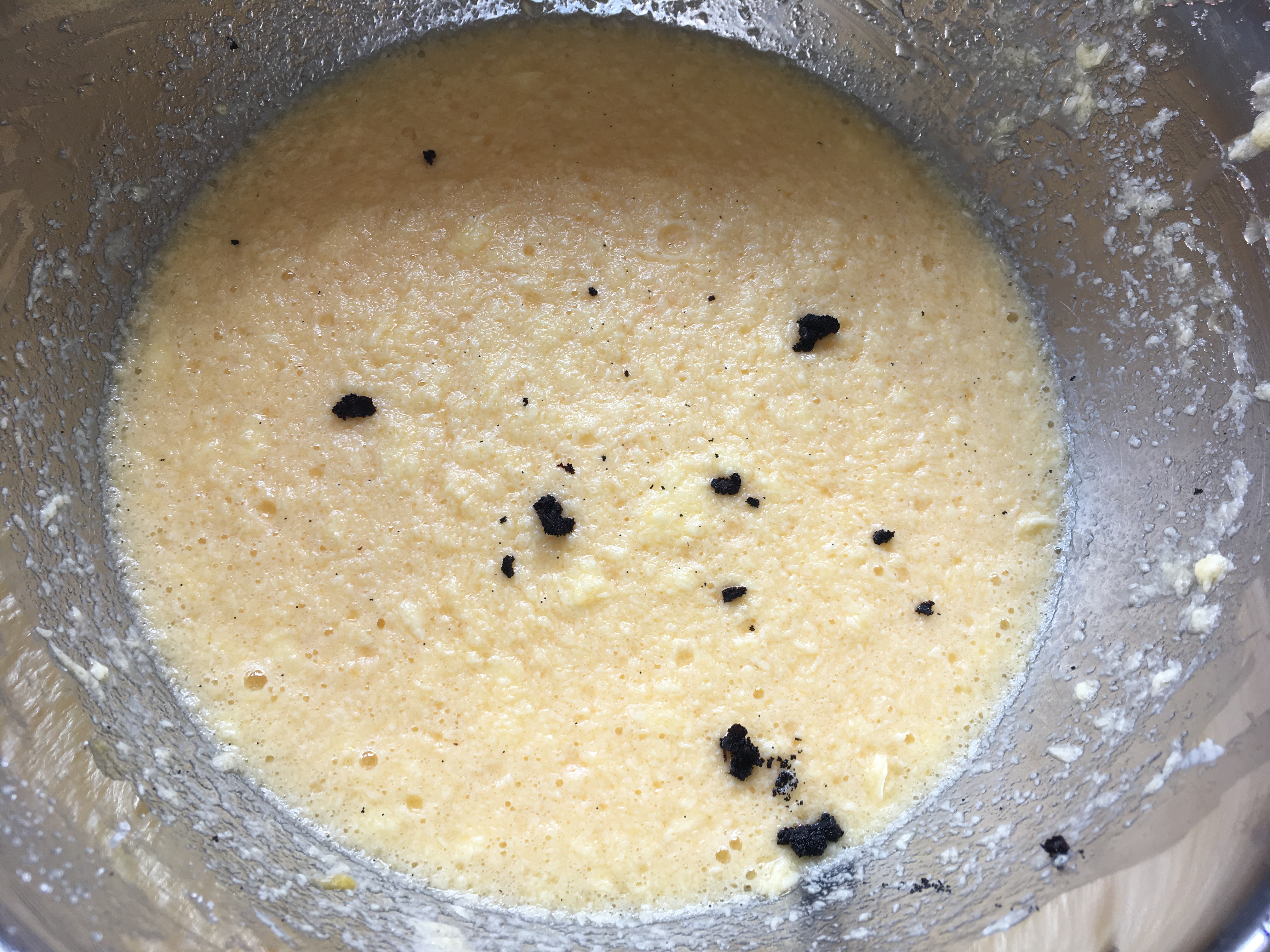Butter & Zucker Butter-Zucker-Gemisch Eizugabe Butter-Zucker-Ei-Gemisch - Das Mark aus der Vanilleschote kratzen und in den Teig geben.