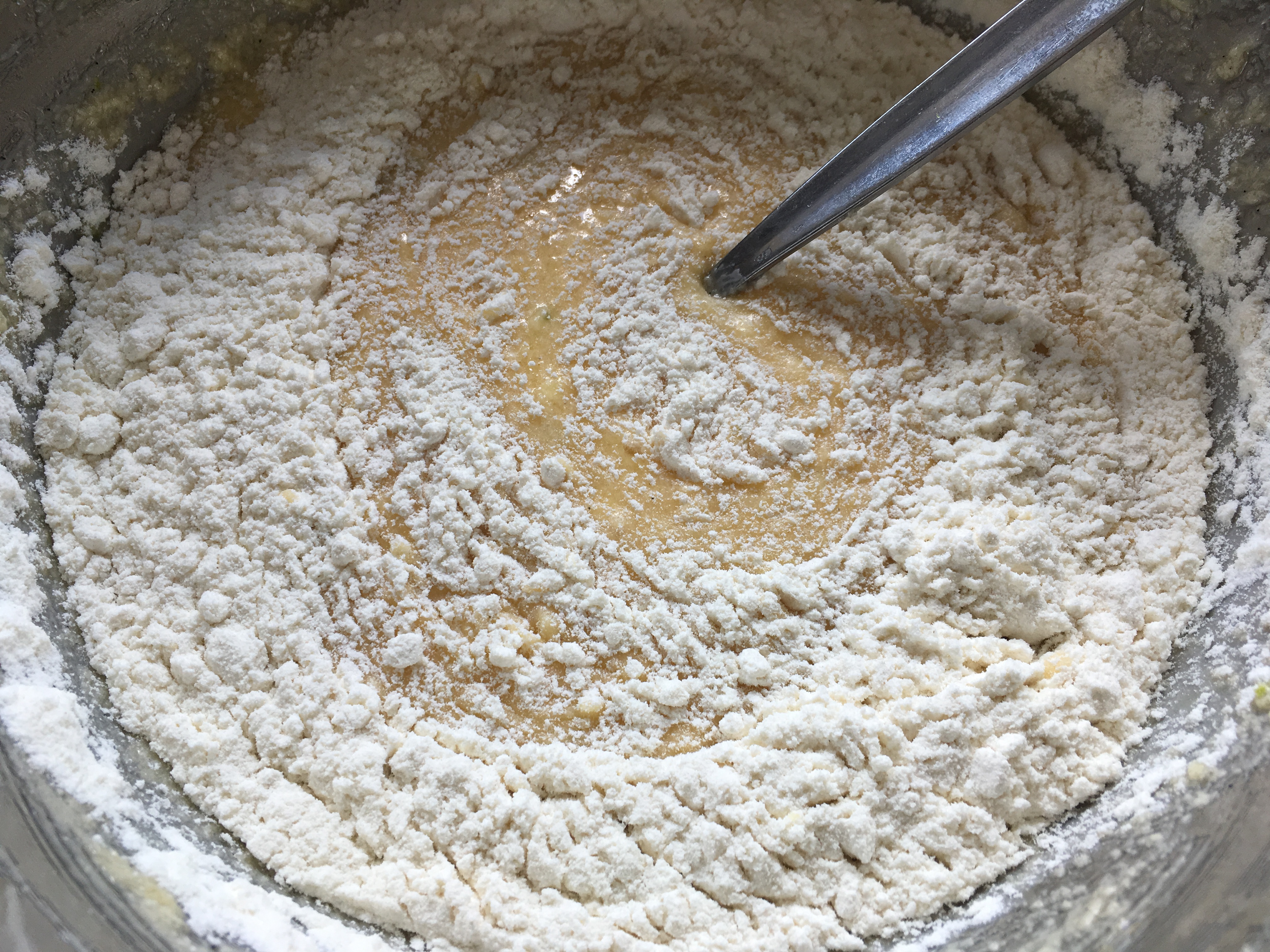 Mandellikör Limonenabrieb - Nun das Mehl langsam unterrühren.