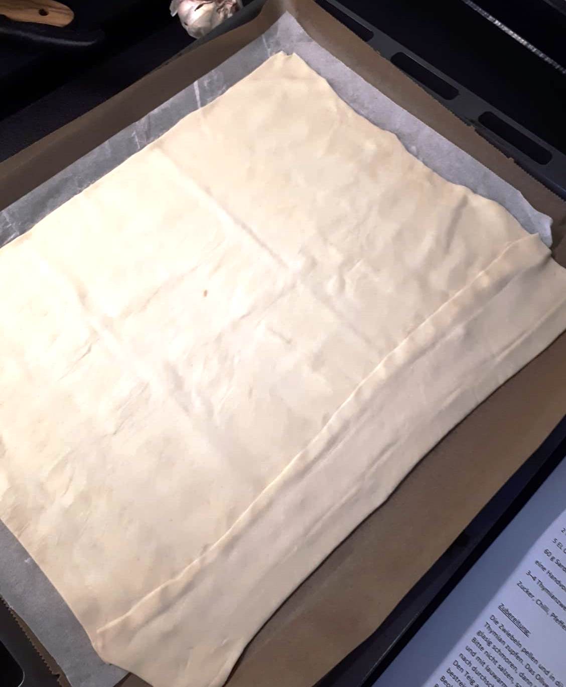 - Tipp für Faule: Flammkuchenteig aus dem Kühlregal.