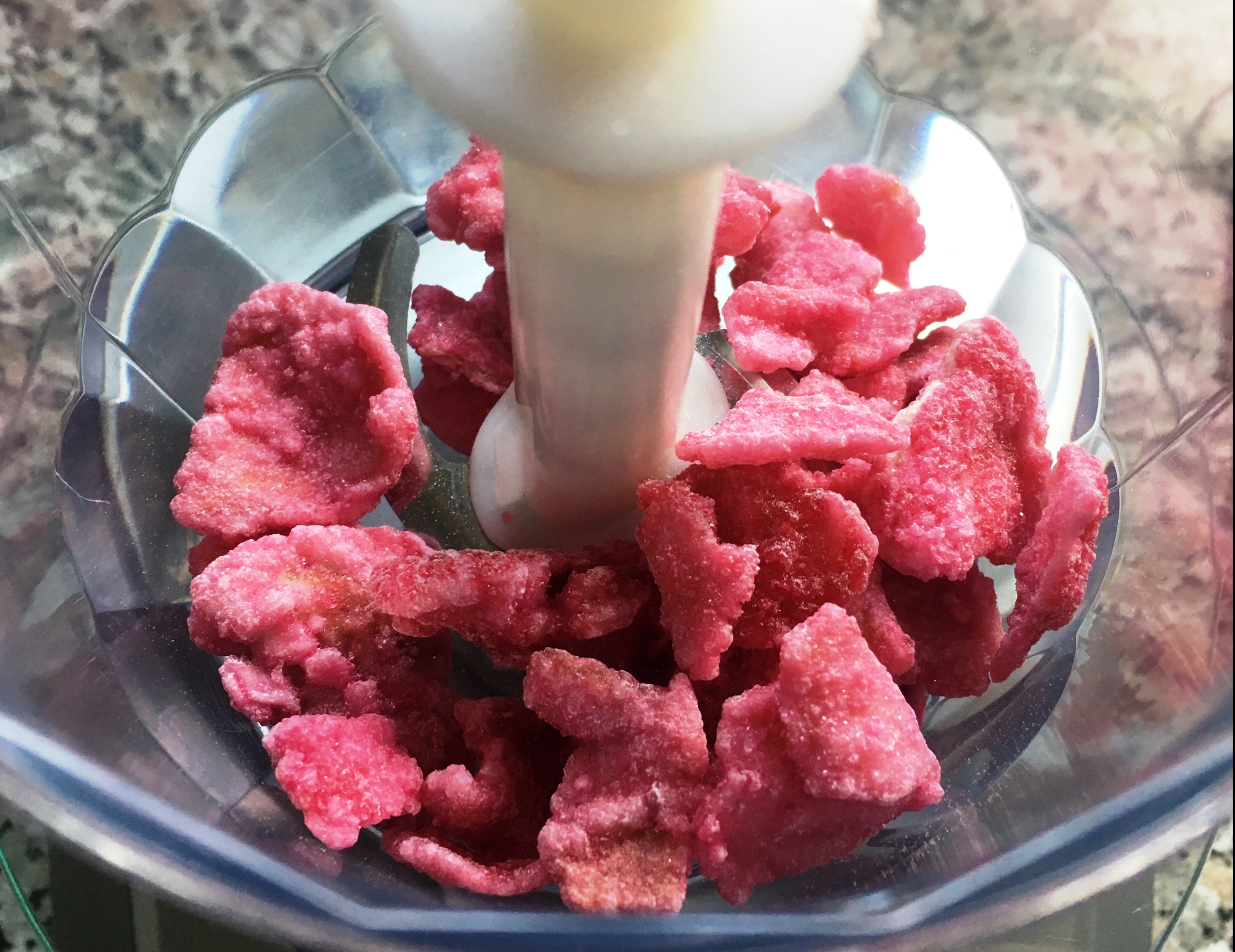 kandierte Rosenblüten zerkleinern zerkleinert - mit 200g Zucker vermischen