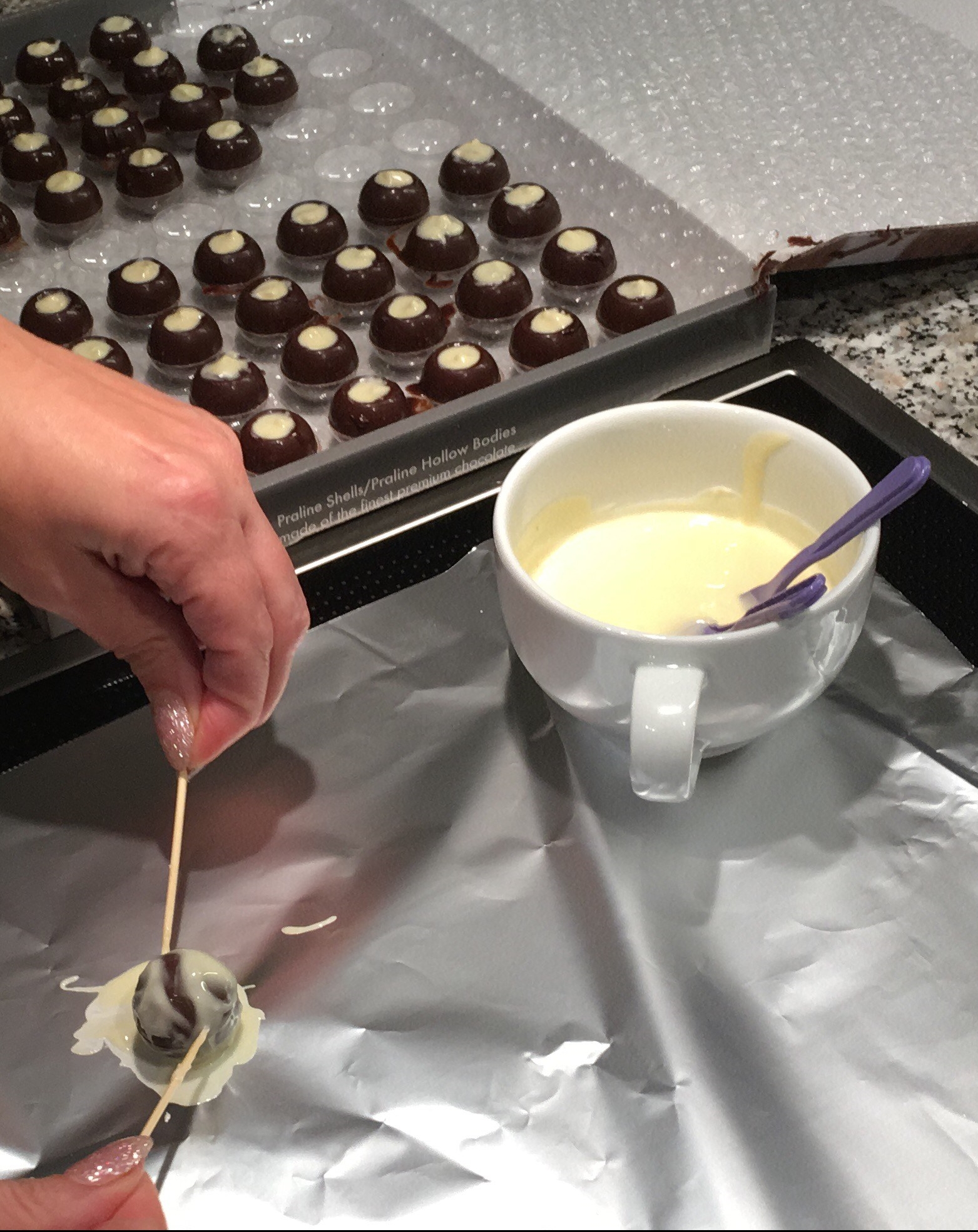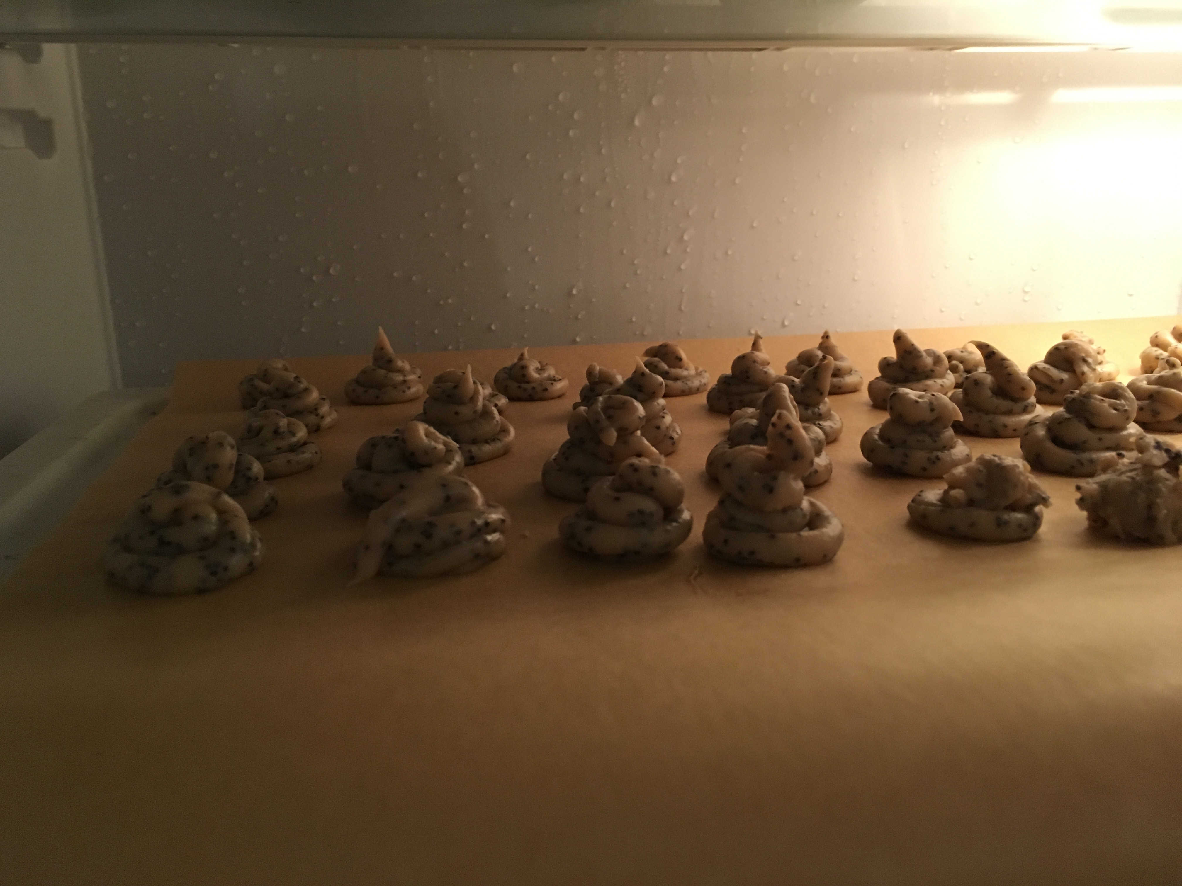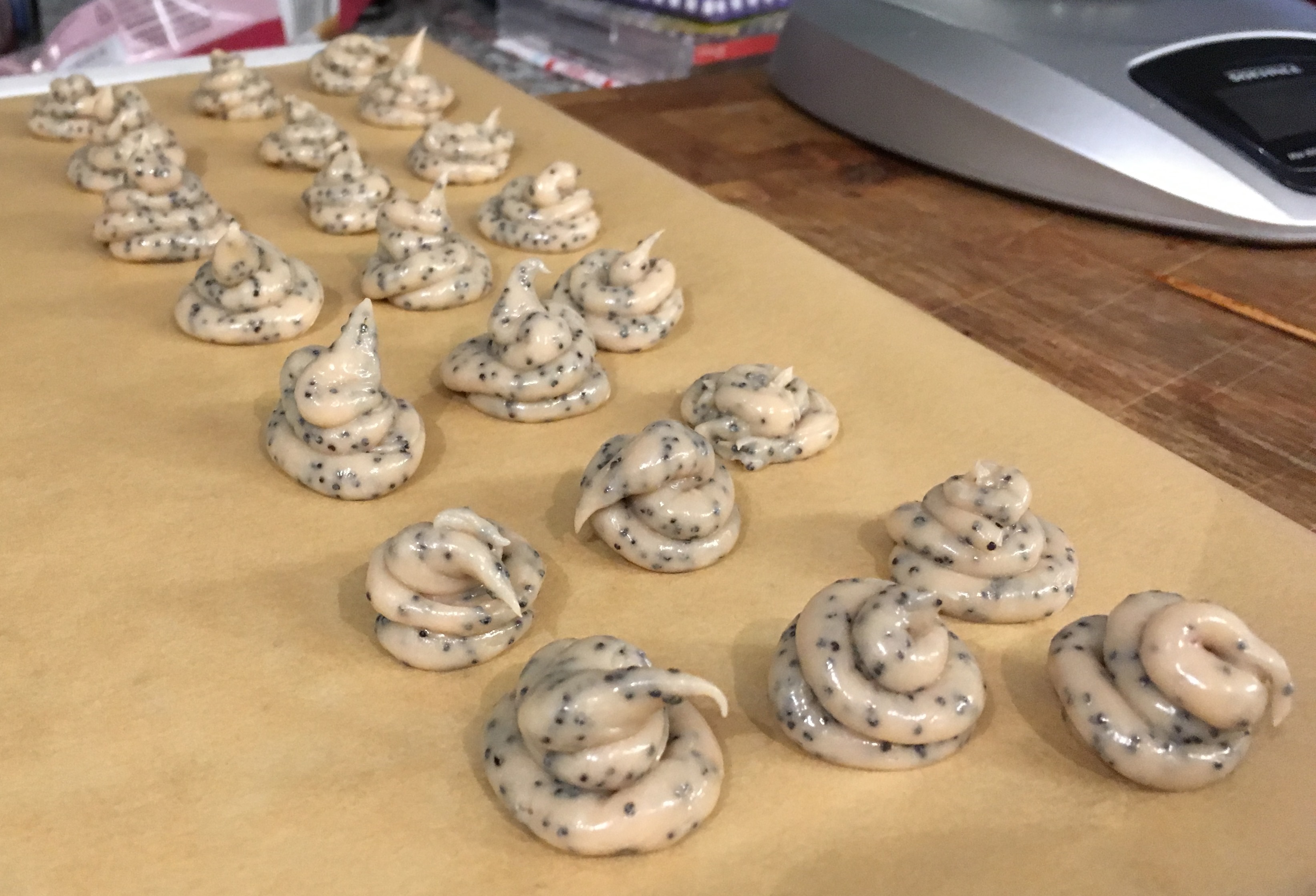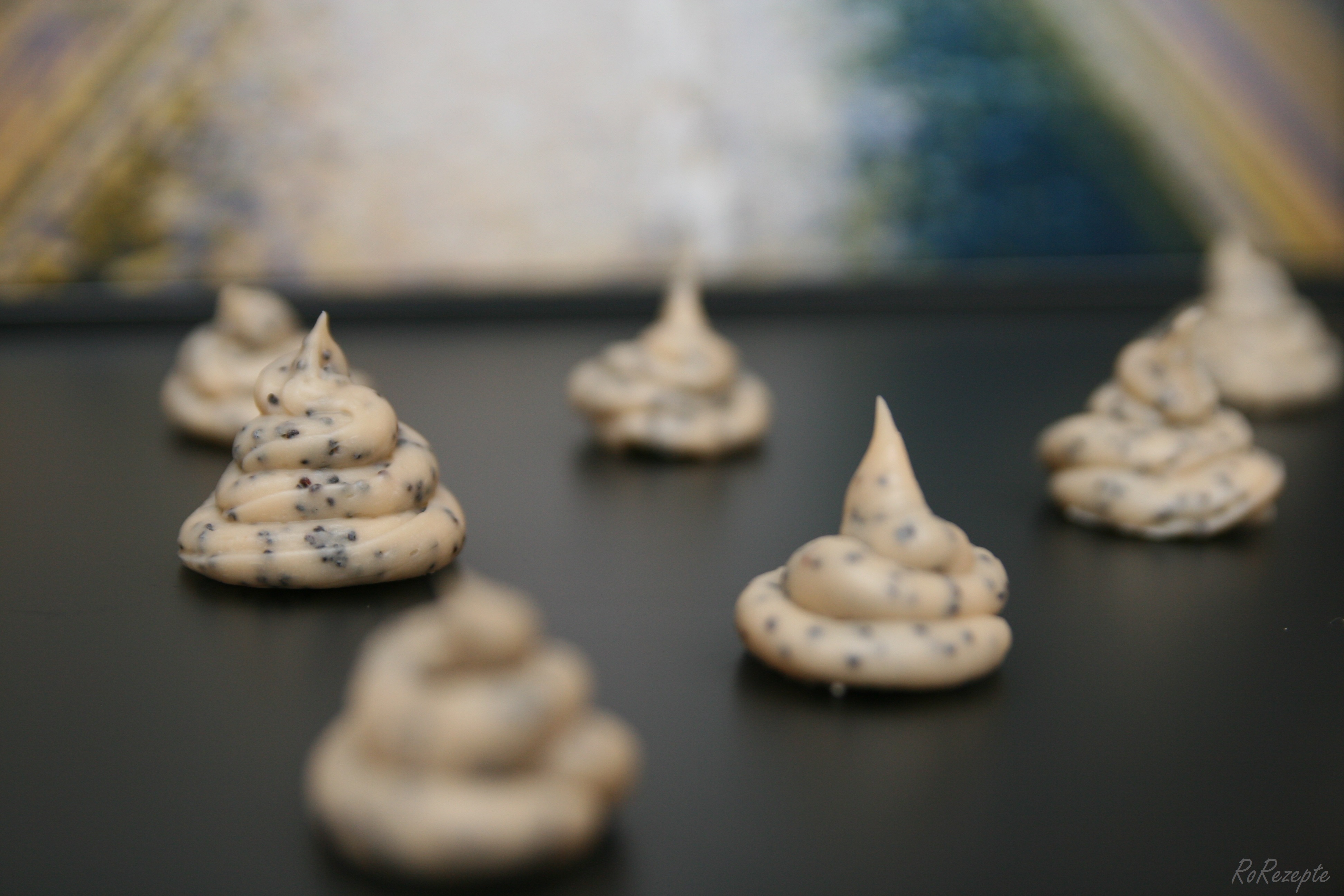 Mohn zugeben Kuvertüre schmelzen Kuvertüre geschmolzen - Sobald sie spritzfähig ist, kleine »Zipfelmützen« mit einer Lochtülle durch einen Spritzbeutel auf Backpapier spritzen und kühl stellen.</span>