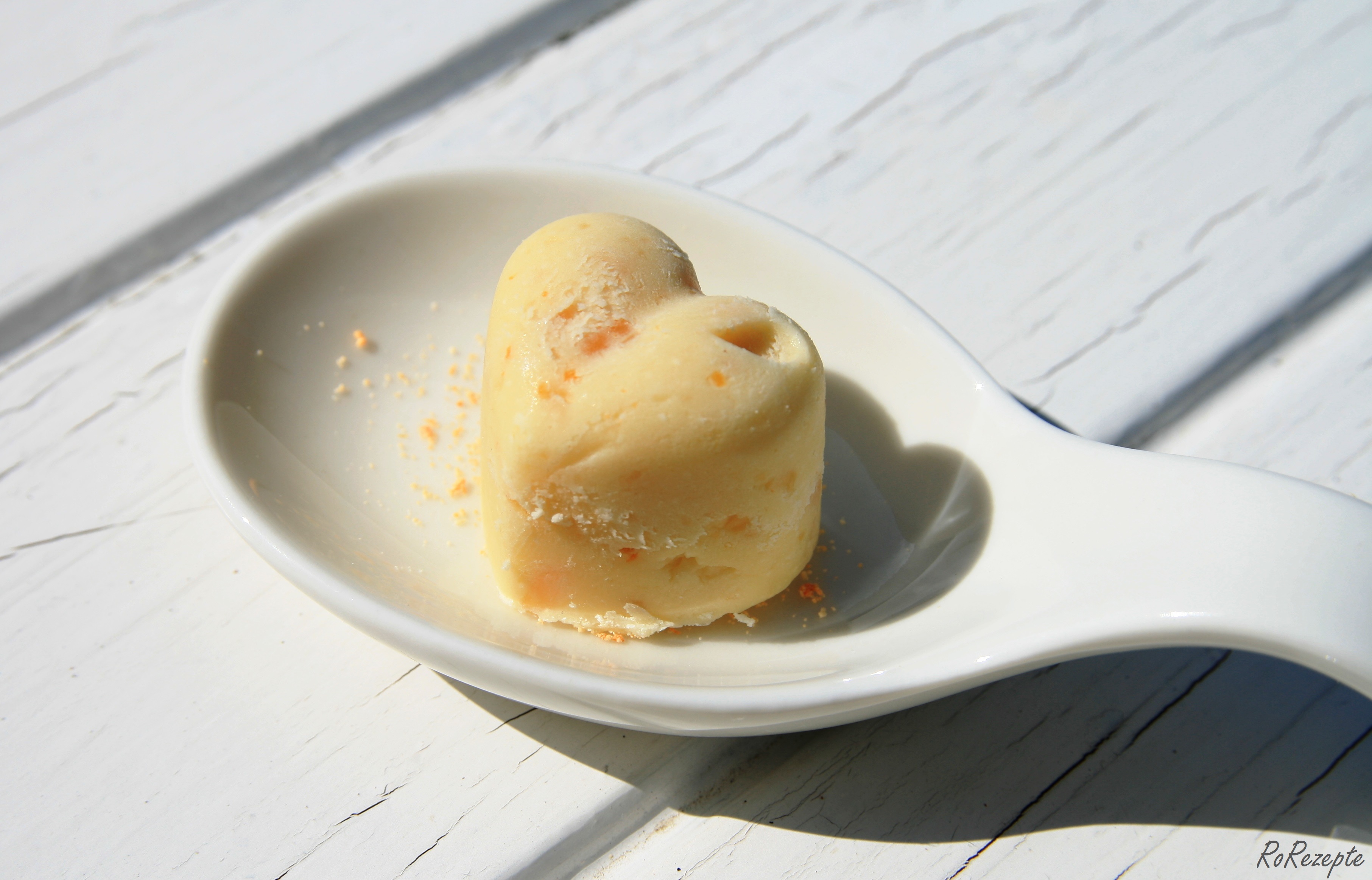 Darf ich vorstellen? Mit den letzten warmen Sonnenstrahlen serviere ich euch meine Praline des Monats September: Keiras weiße Orangen-Macadamia-Herzen. Sie sehen nicht nur süß aus, sie sind auch sehr lecker, aromatisch mit einer fruchtig Note und einem leichten Prickeln auf der Zunge.