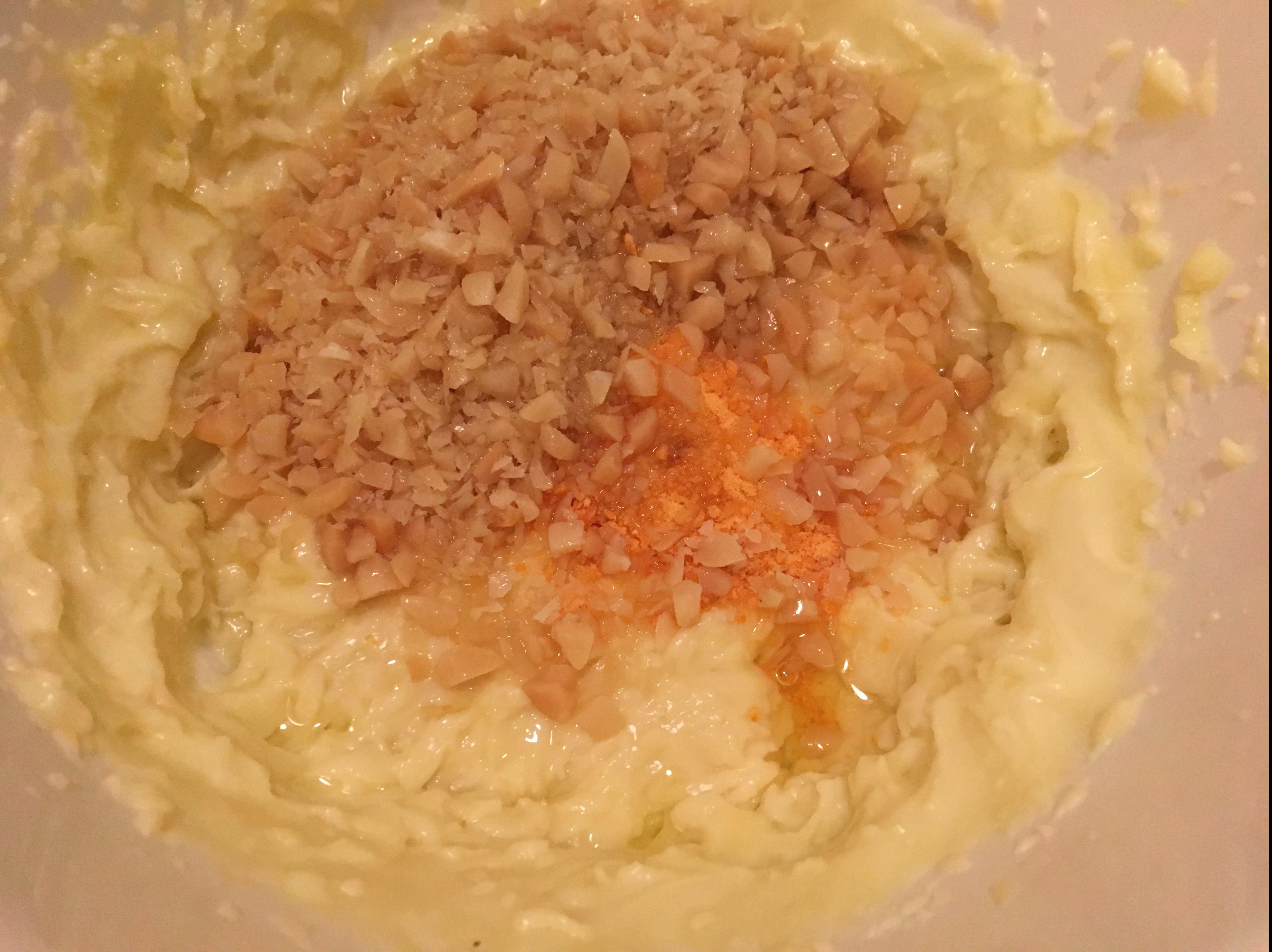 - 50g fein gehackte Macadamianüsse hier könnt ihr die gesalzenen Macadamias von Ueltje nehmen und vor dem Hacken das Salz etwas abrubbeln 🙂