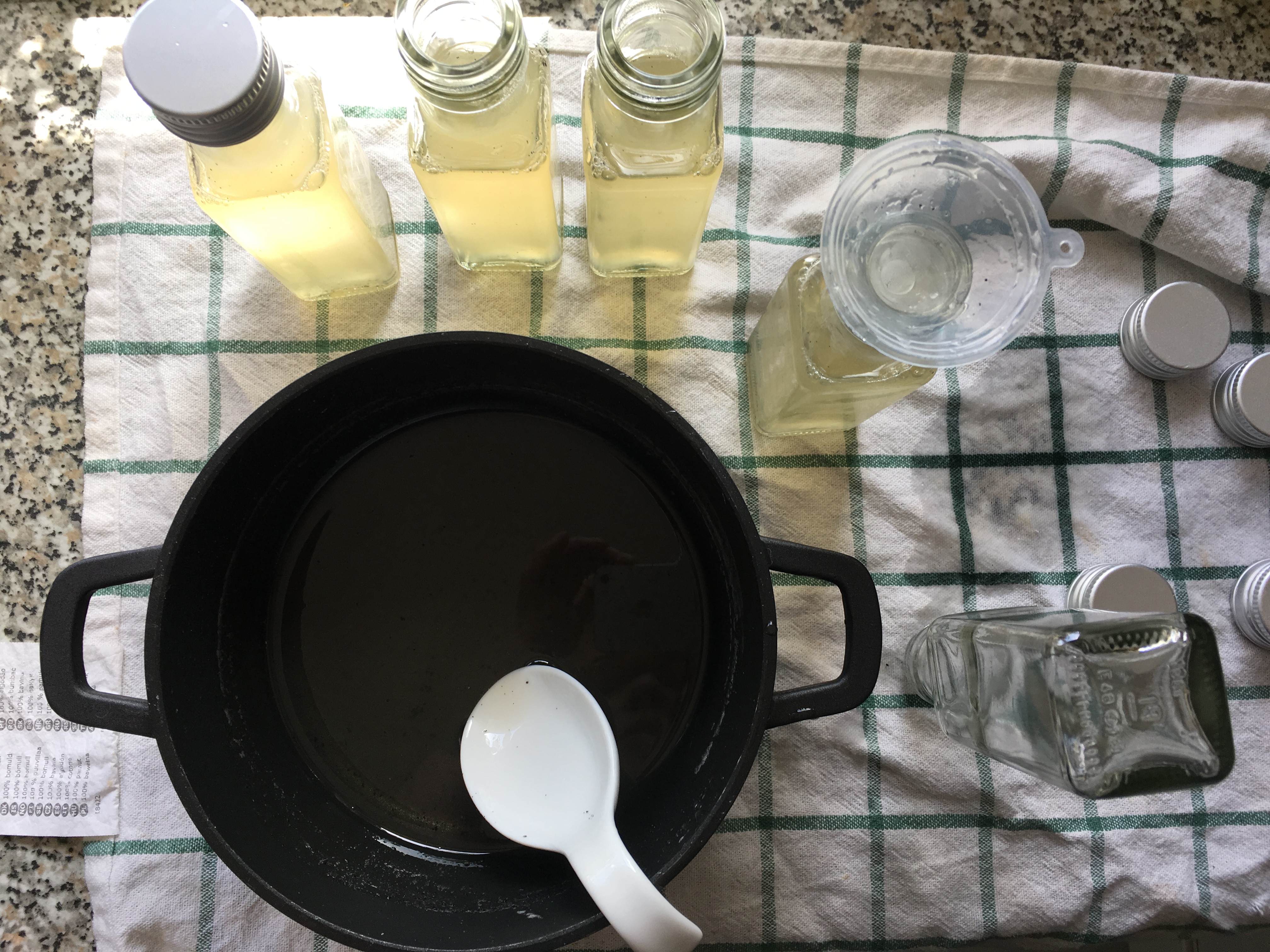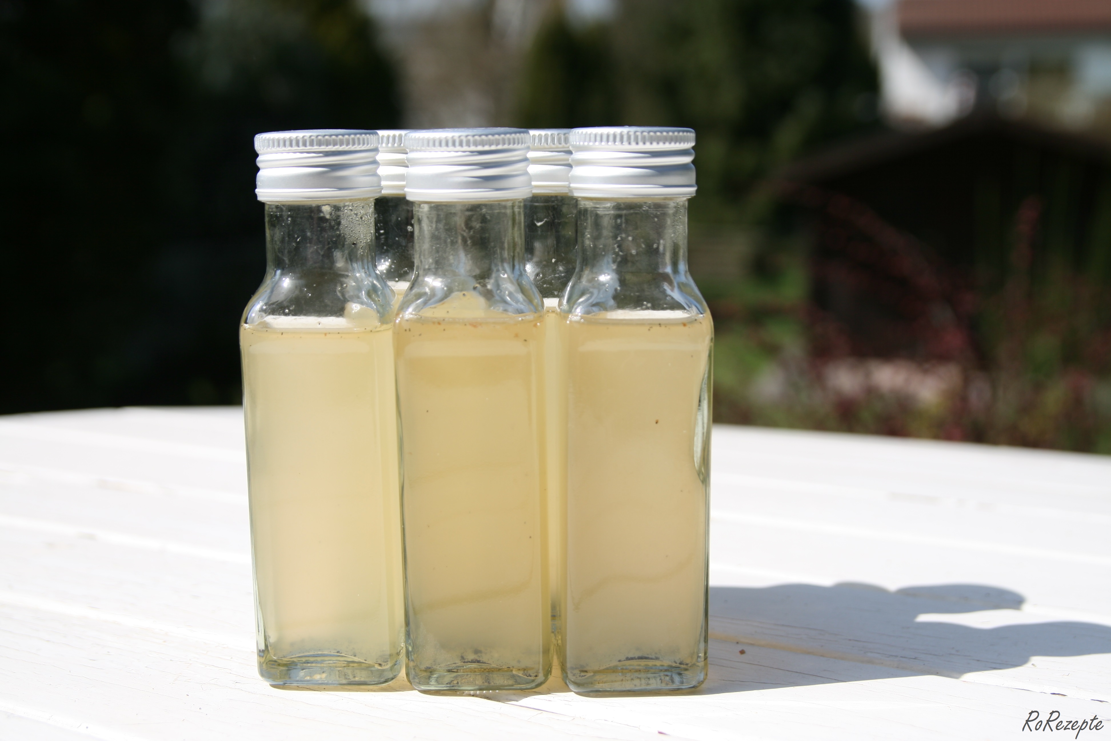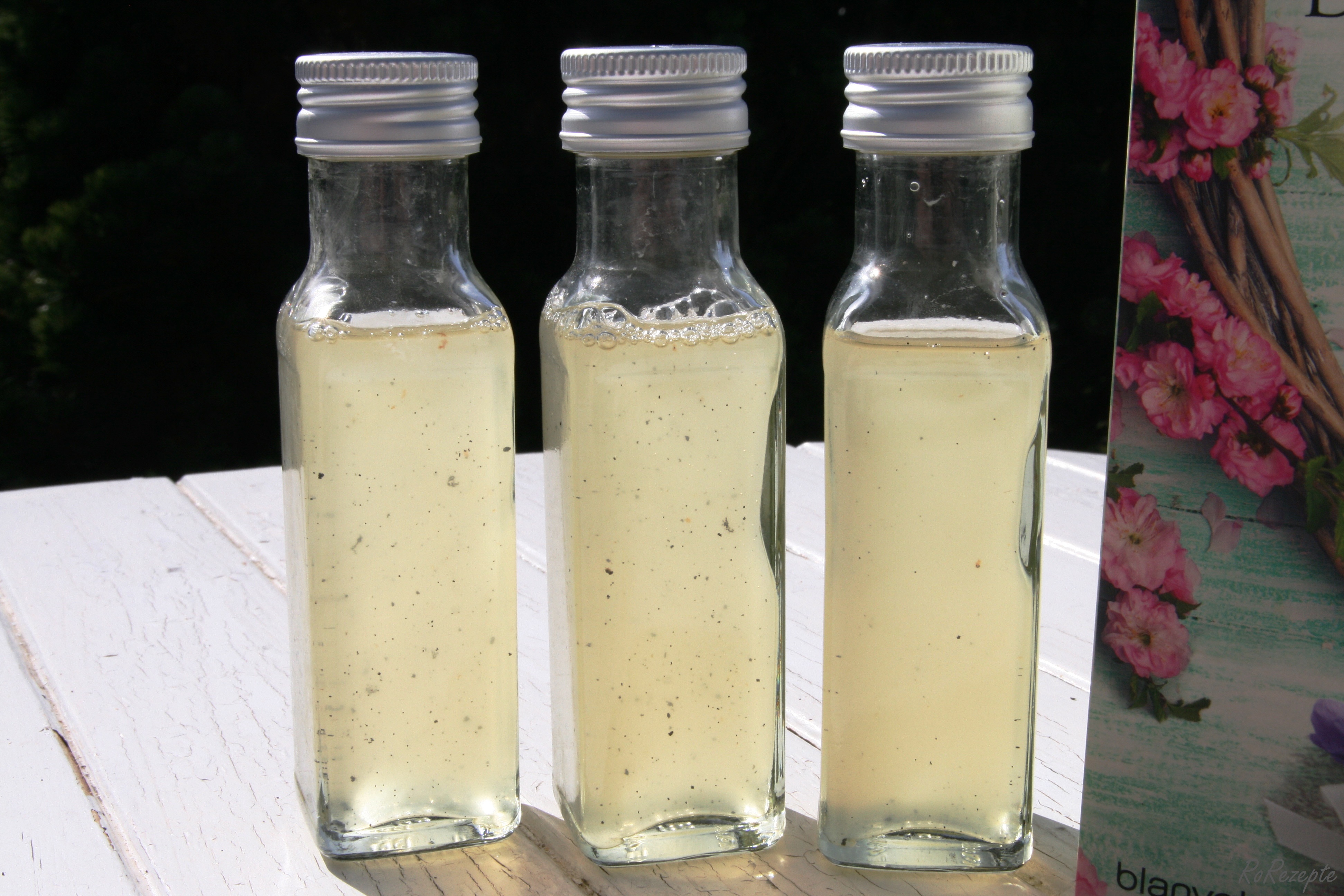 Zucker, Vanille, Zitronensaft aufkochen - Den Sirup in heiß ausgekochte Glasflaschen abfüllen.
