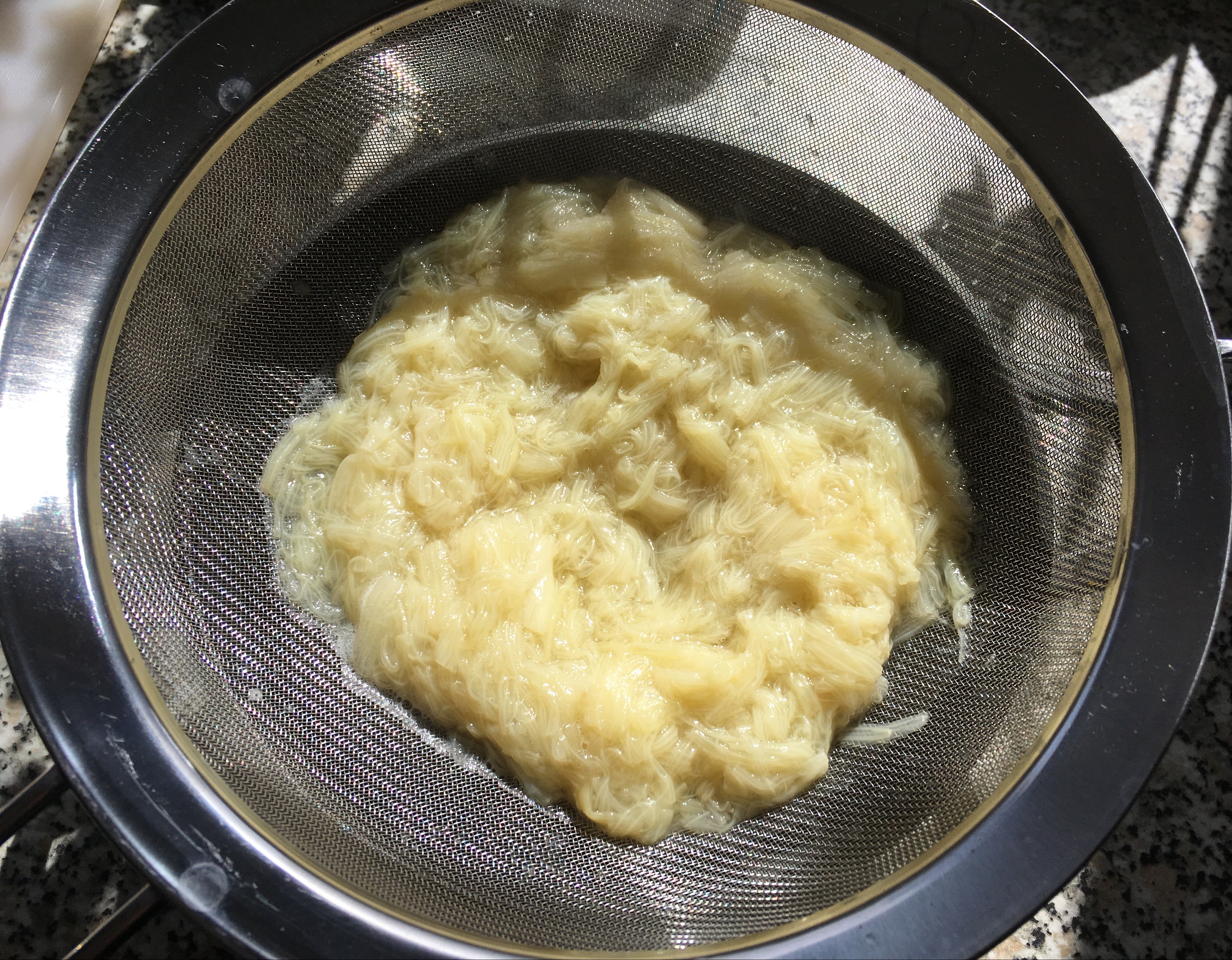 Warum bei meinem Rhabarbersirup die schöne orange/rötliche Färbung fehlt? Ich habe meinen Rhabarber richtig geschält und darunter befand sich “leider nur” helle Stücke. Aber schaut einfach selbst 🙂