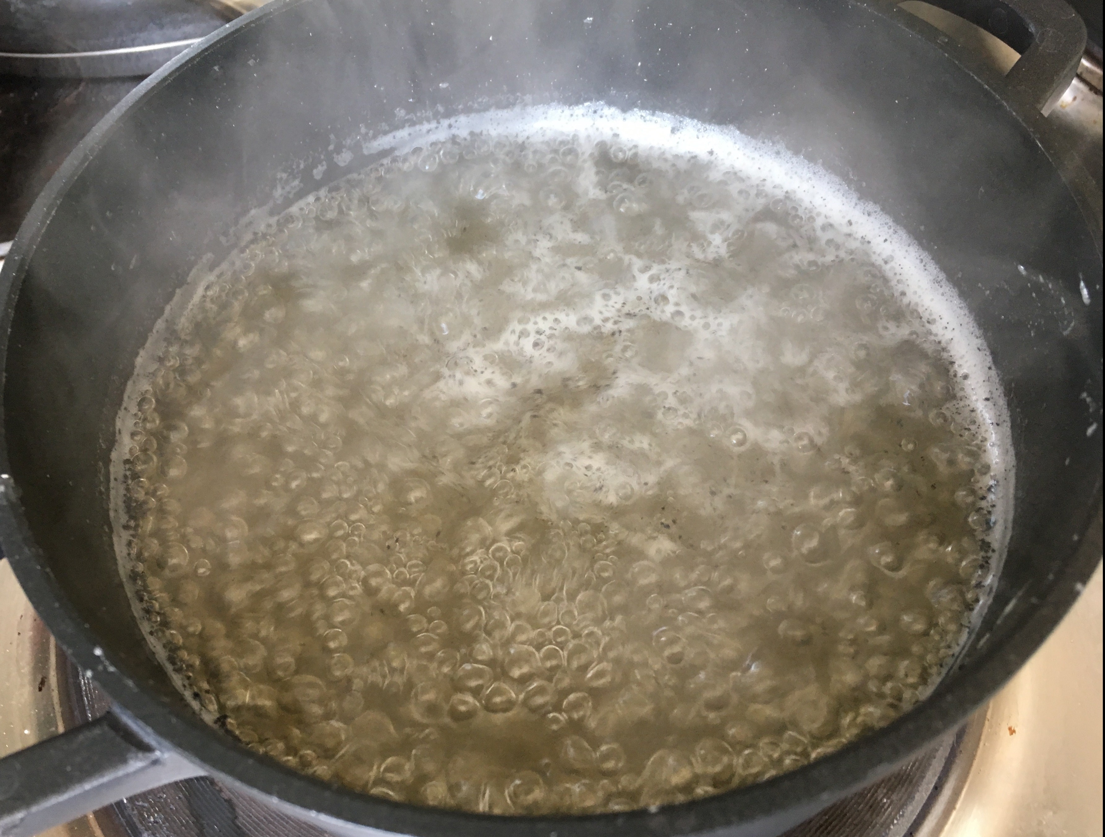 - Die Stücke in einen Topf geben und mit dem Wasser zum Kochen bringen. Bei mittlerer Hitze etwa 10 Minuten kochen, bis der Rhabarber zerkocht ist.