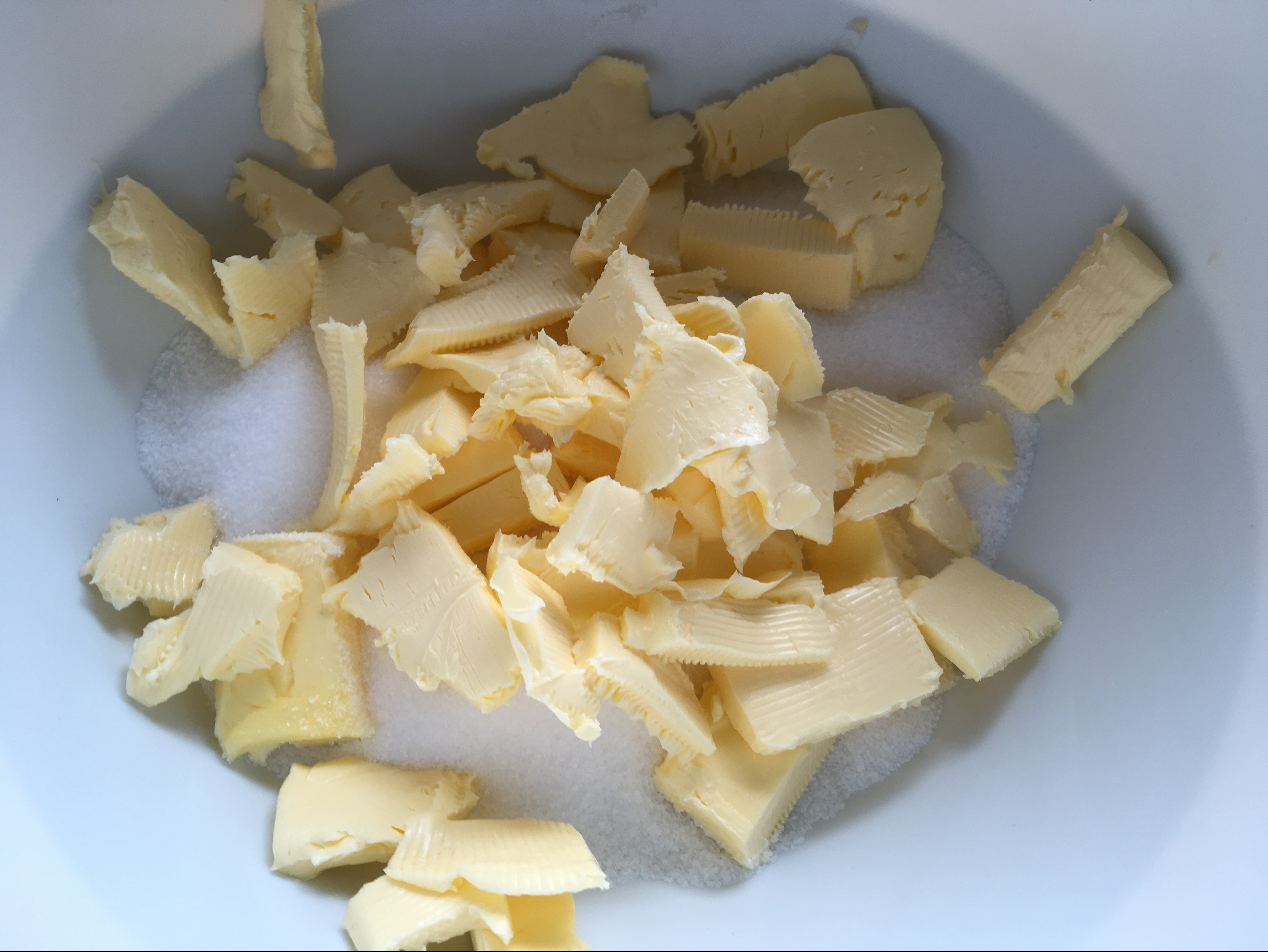 - Butter und Zucker in eine Schüssel schaumig schlagen.<>