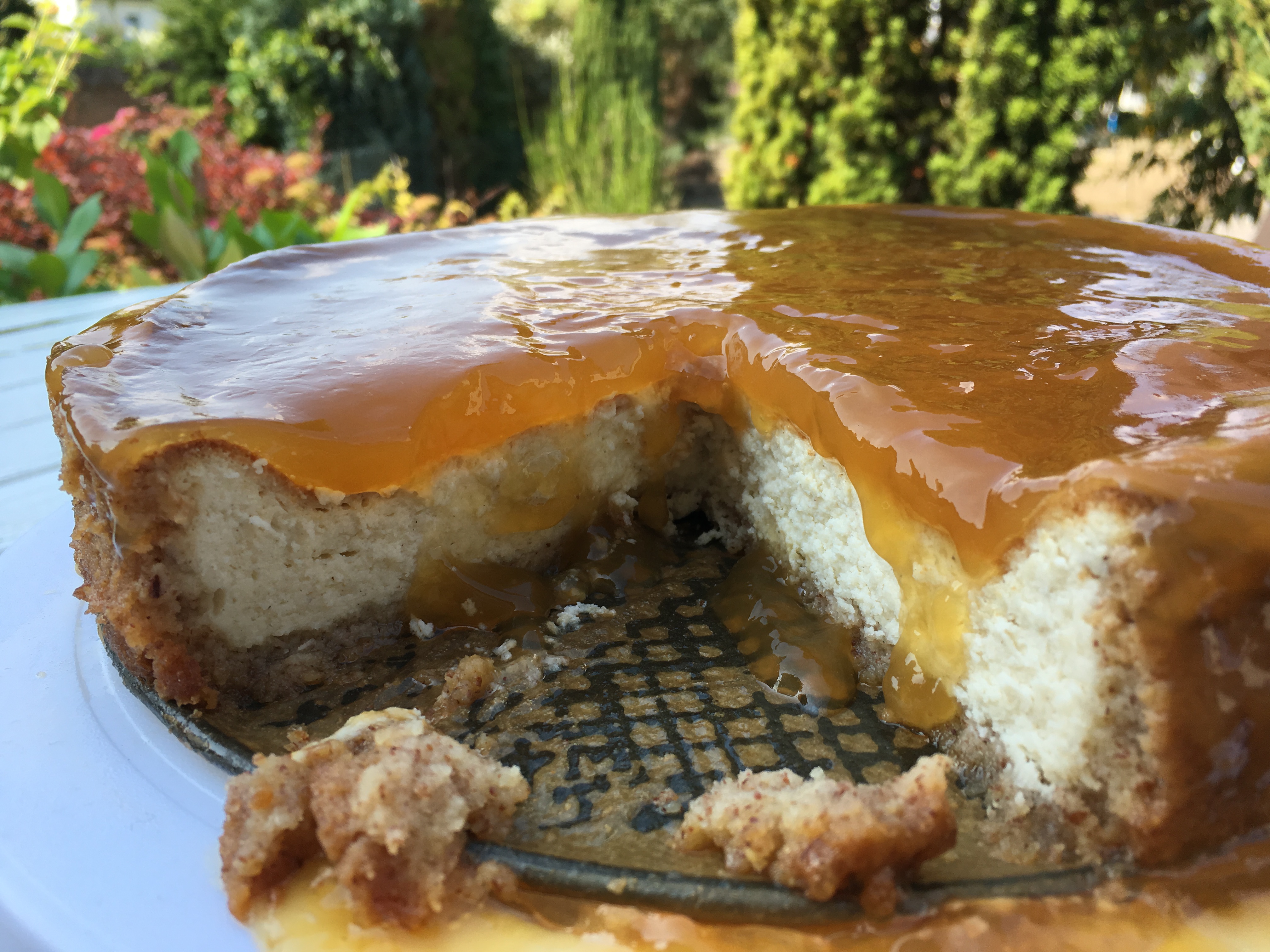 Theklas Torte überrascht mit einem Orangen-Sanddorn-Fruchtguss auf einem luftigen Käsekuchen mit Mandelboden. Super lecker, super saftig, überhaupt nicht trocken und “ein Käsekuchen mal anders”.