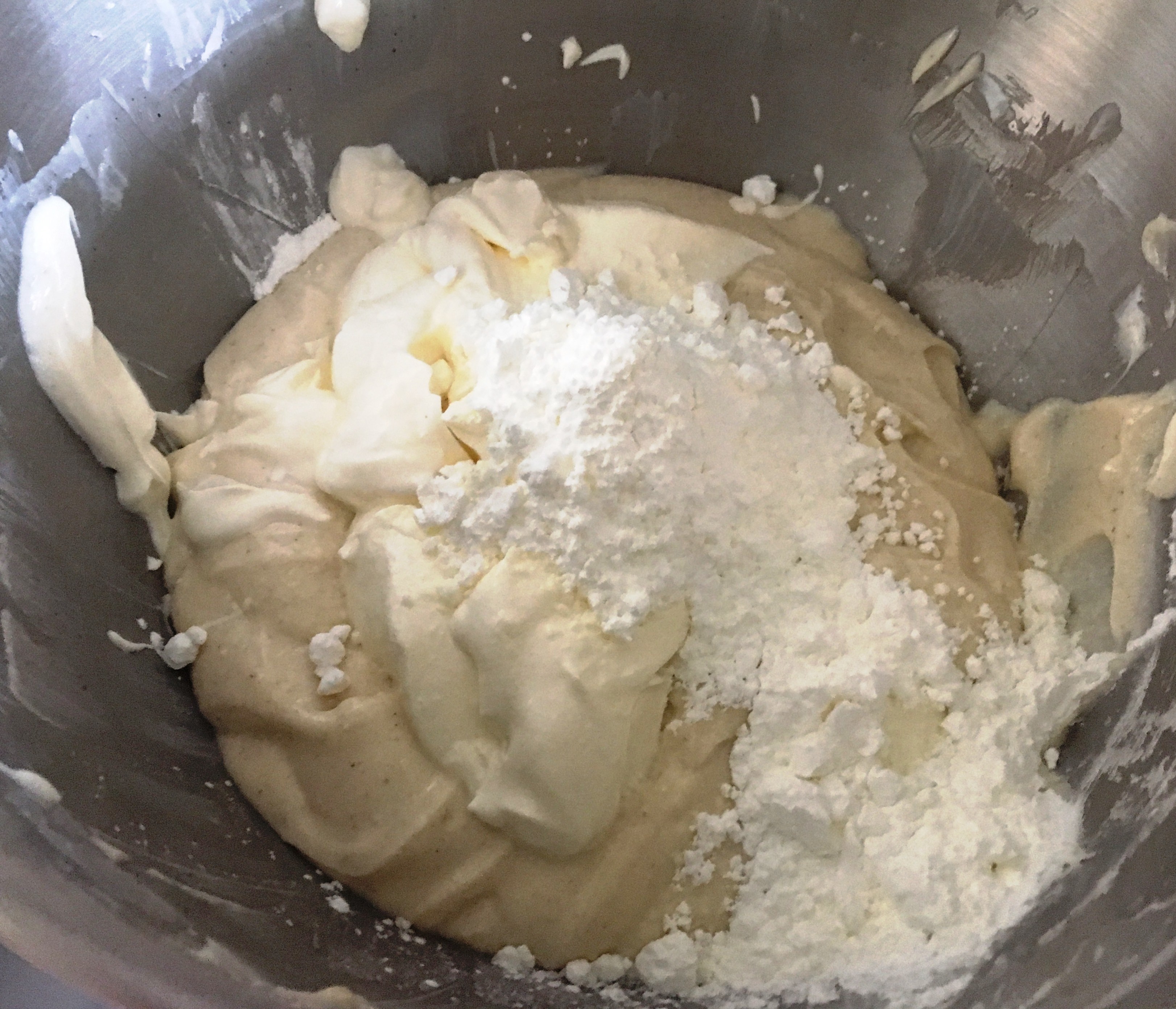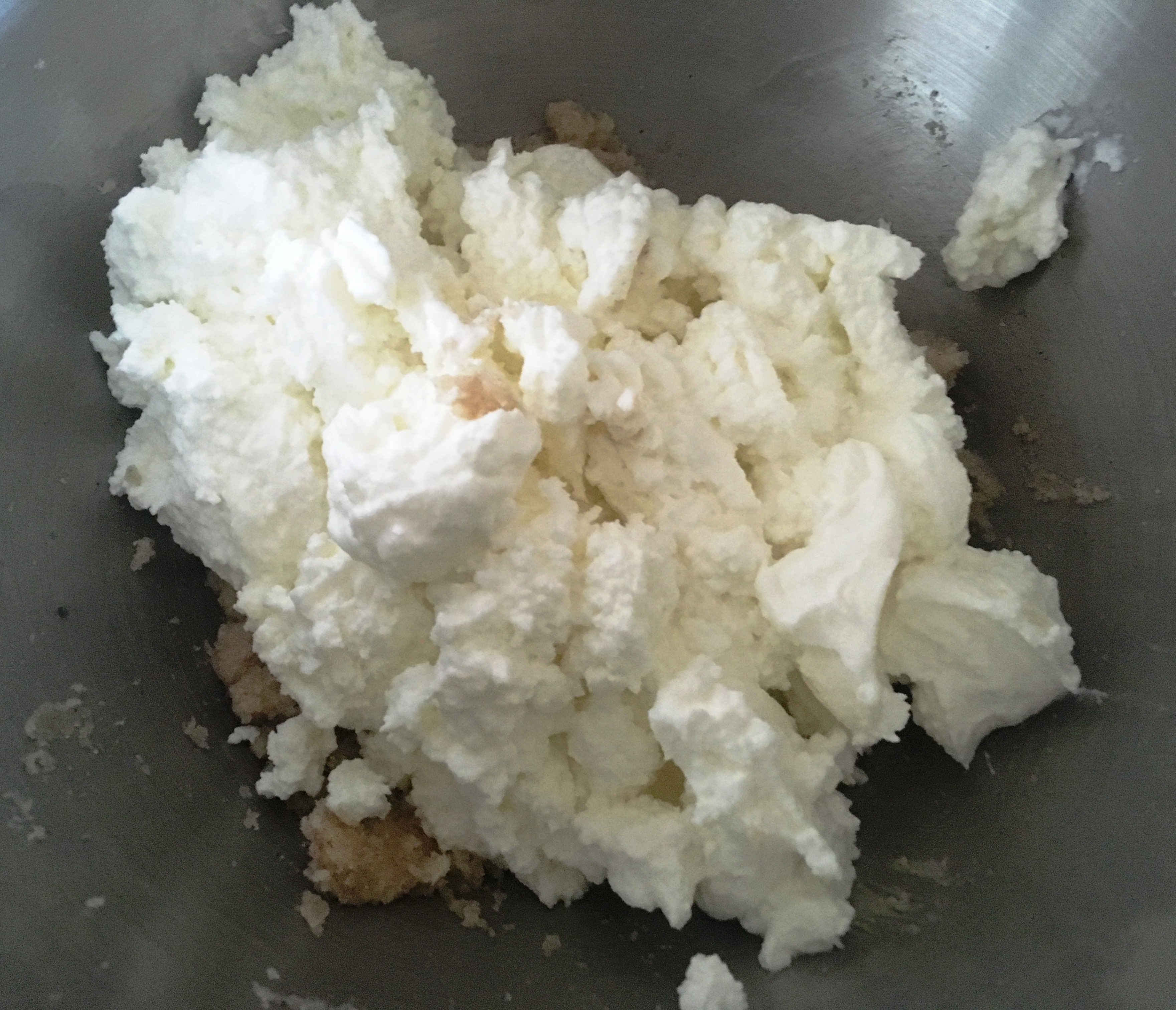 - Die Butter mit dem Zucker und dem Vanillezucker verquirlen und den Quark unterrühren.