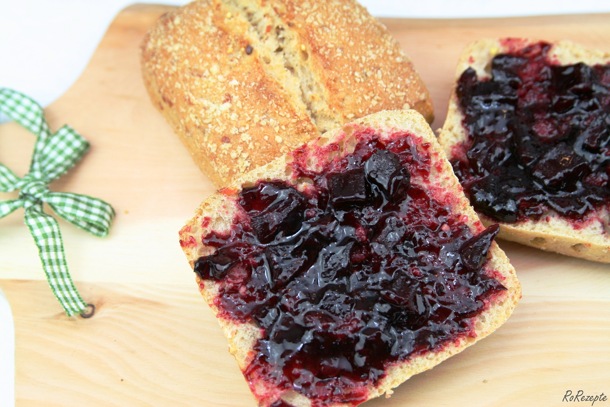 Die Marmelade ist, wenn sie fertig ausgekühlt ist, noch relativ flüssig. Mit der Zeit wird sie aber fester 🙂 Der Geschmack ist überraschend lecker – die Beerennote und den Rotwein schmeckt man super heraus. Die kleinen Apfelstückchen geben einen gewissen Crunch. Den Zimt und die Wallnüsse geben der Marmelade fast einen herbstlichen Touch. Auf jeden Fall ein tolles Rezept, welches ich euch unbedingt noch zeigen musste 🙂