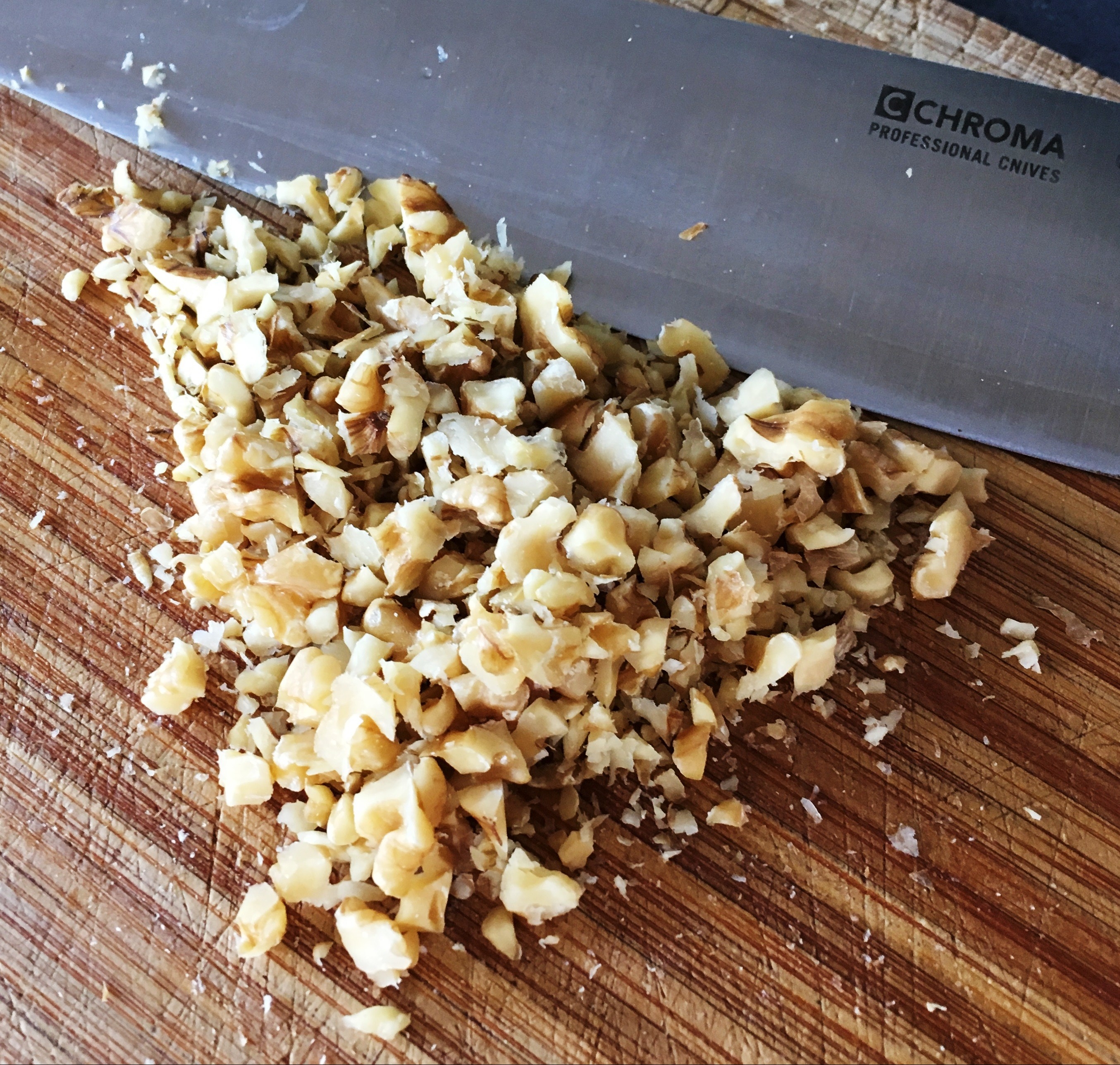 aufgekocht filtern - Die Äpfel schälen, entkernen und in kleine, feine Würfel schneiden, die Walnüsse hacken. Die Apfelstücke behalten in der fertigen Marmelade ihre Größe.