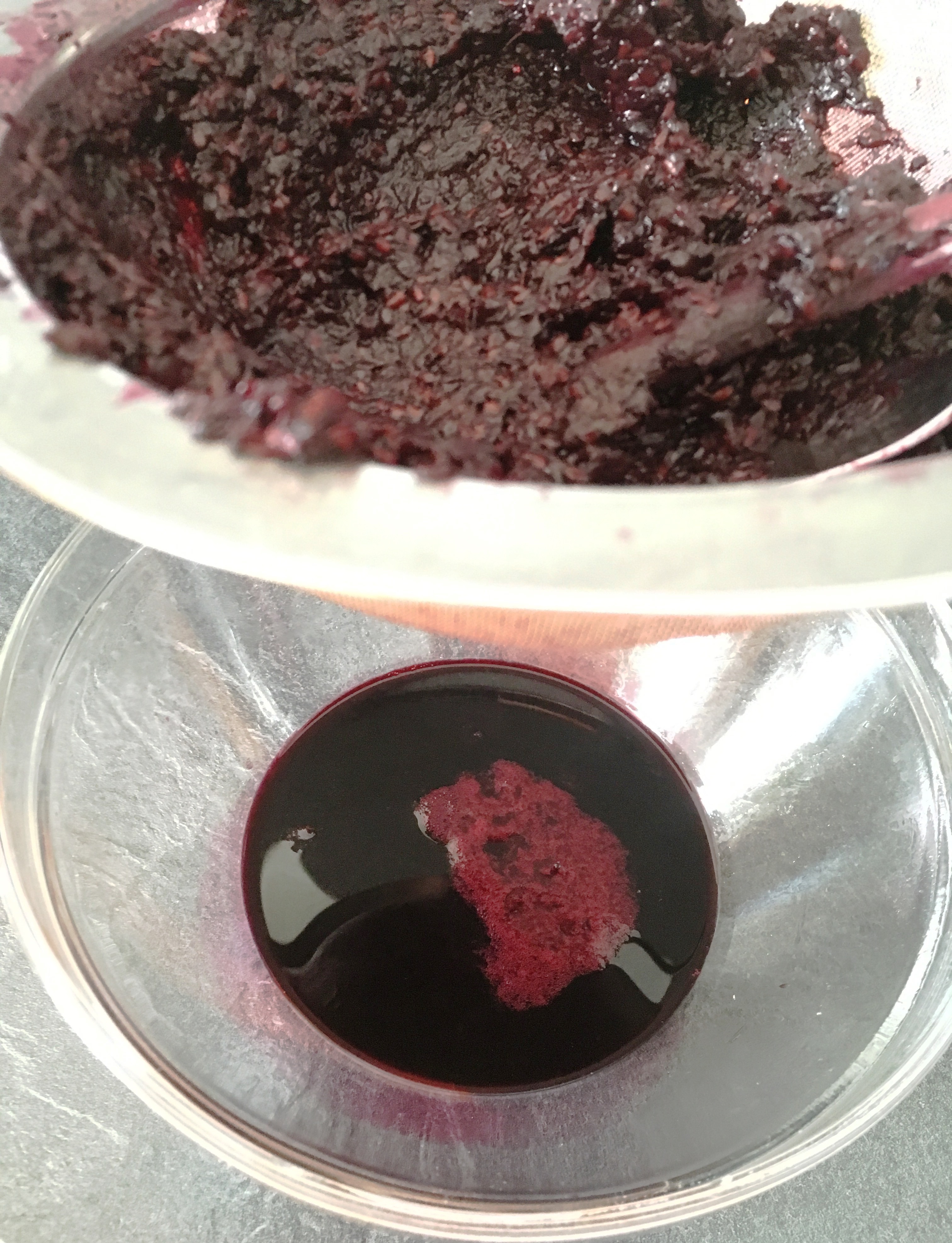- Aus den Fliederbeeren Saft kochen. Dazu eignet sich am besten ein Dampfentsafter. Falls ihr, so wie ich, auch keinen Entsafter habt, kocht ihr die Beeren einfach in etwas Wasser auf und passiert sie anschließend durch ein Sieb.