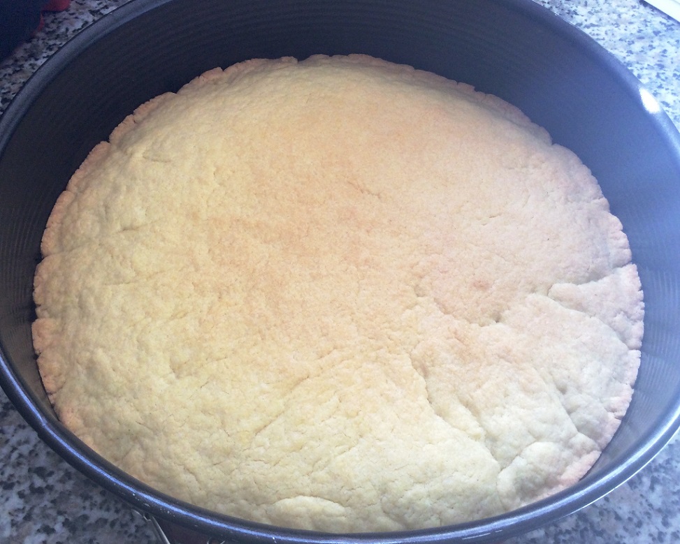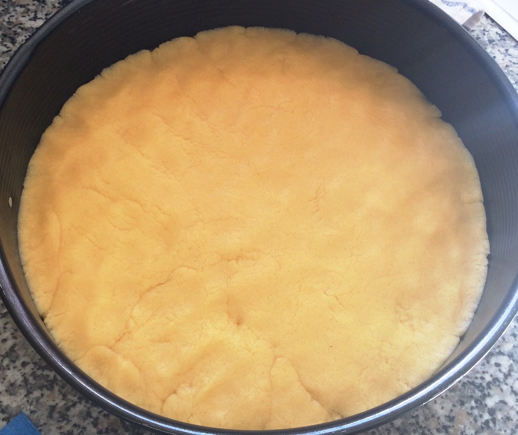 1. Alle Teigzutaten verrühren. Ordentlich kneten, ausrollen und als Boden in die Form geben. Teig bei 175 Grad Umluft ca. 20 Minuten goldgelb backen. Da der Kuchen am Ende bei mir sehr saftig war, würde ich die Backzeit an dieser Stelle sogar etwas verlängern.