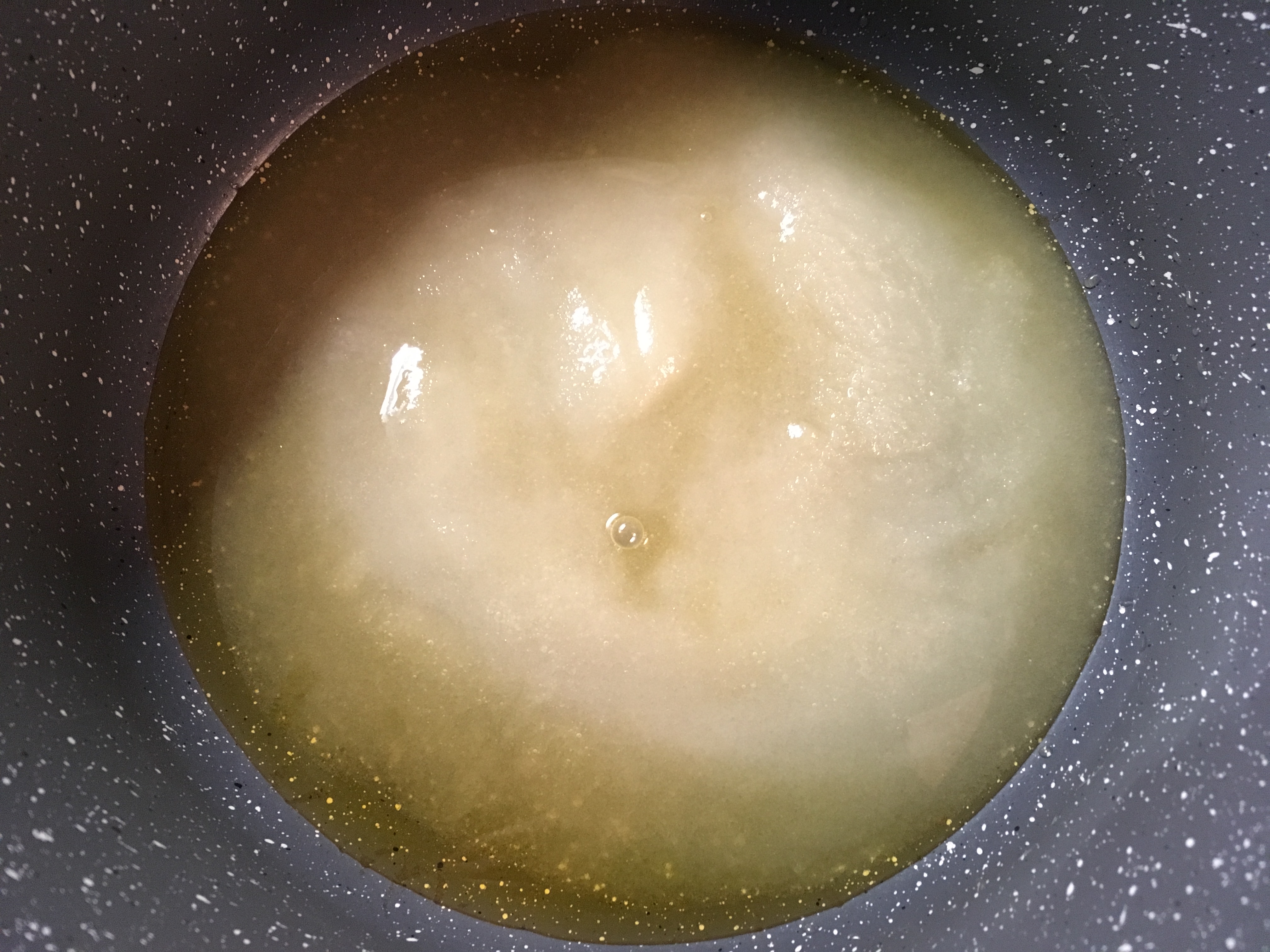 Vorsicht: Die Temperatur sollte nicht über 160°C steigen. Zwar würden höhere Temperaturen den Prozess beschleunigen, allerdings erhöht sich dadurch auch die Gefahr, dass einige Stellen im Topf zu schnell erhitzen und der Zucker verbrennt. Also lieber sachte bei mittlerer Temperatur köcheln lassen und etwas Geduld haben, das kann schon mal 10-15 Minuten lang dauern. Dabei gilt weiterhin: bitte nicht umrühren.