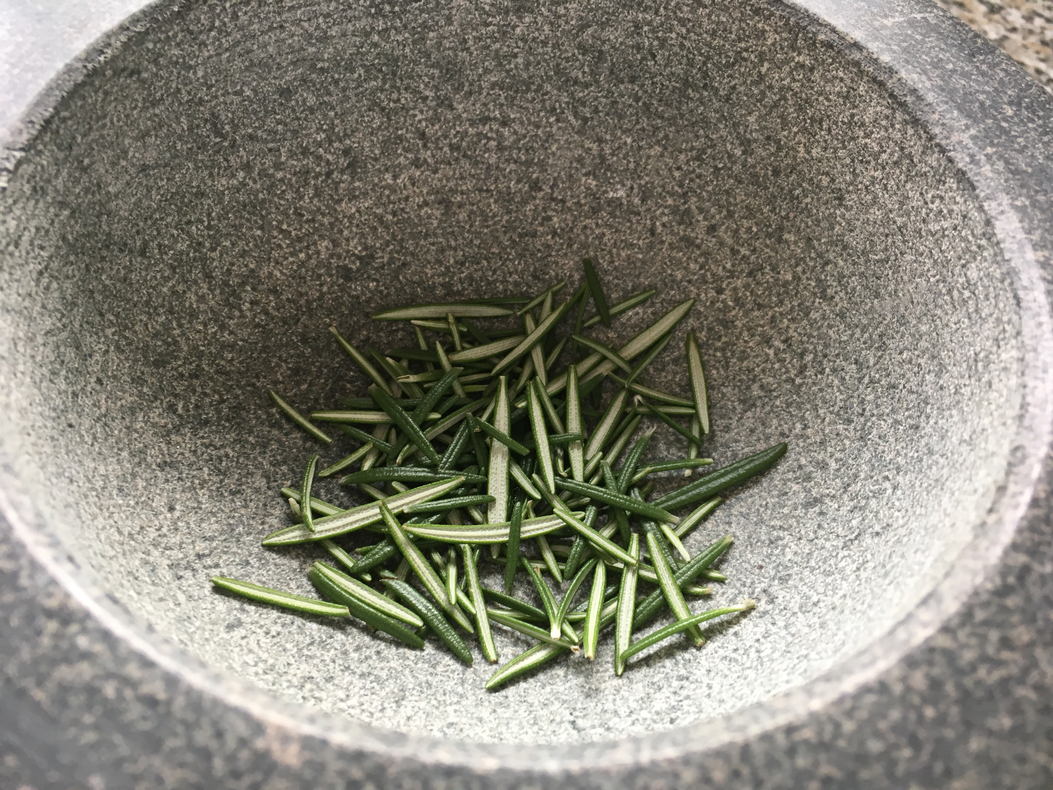 Abrieb Abrieb - Blättchen von zwei Rosmarinzweigen 2g Tipp: bereits hier entweder mit der Küchenschere zerkleinern oder mit dem Messer hacken