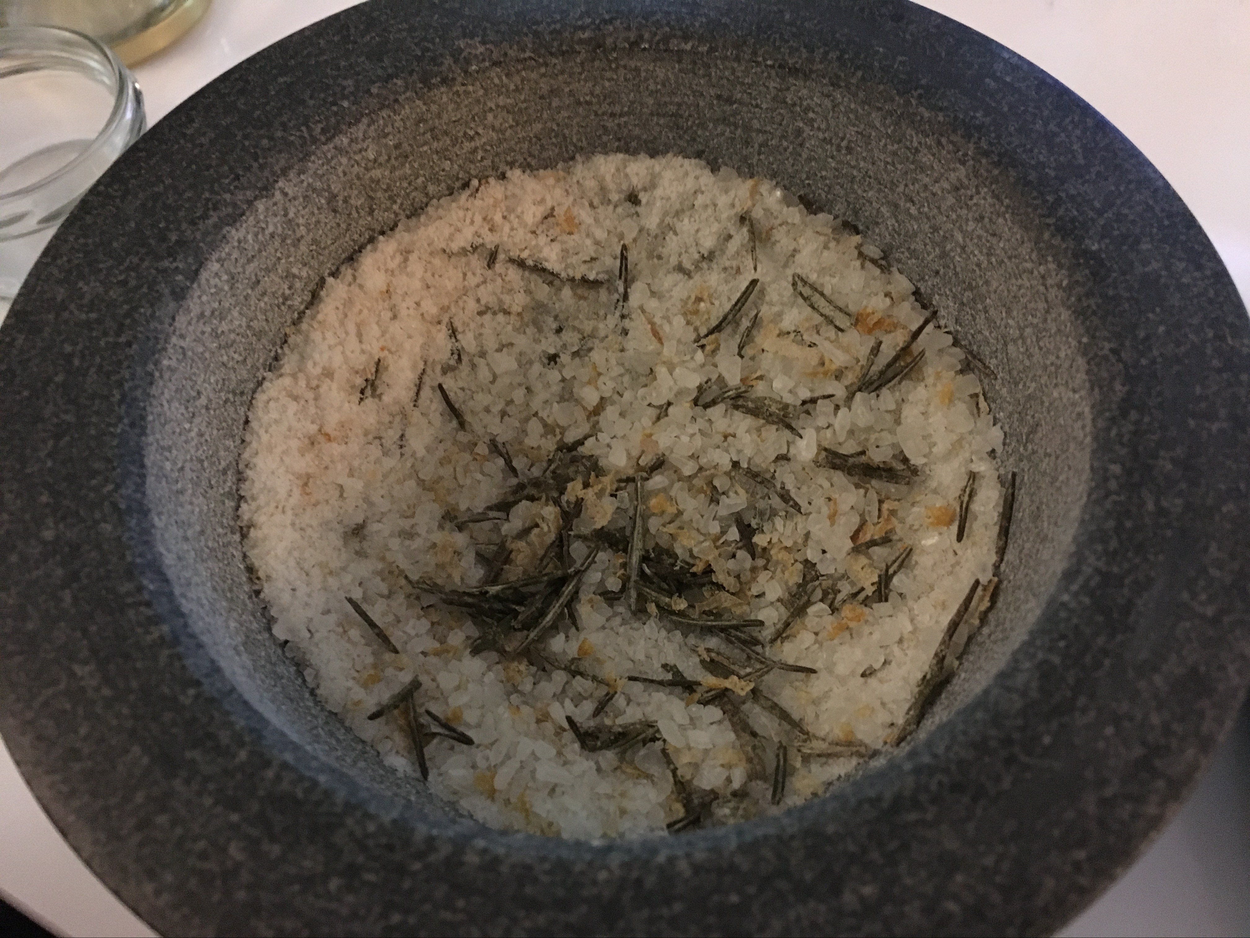 Mörsern Mörsern - Lassen Sie das Salz dann ein paar Tage in einer Schale, abgedeckt mit einem sauberen Geschirrtuch, trocknen, bevor Sie es in kleine Gläser abfüllen. Klumpt es dabei, einfach noch mal mörsern. Das Salz konserviert die Kräuter etliche Monate lang. Ich habe im Nachgang den Rosmarin noch mit der Küchenschere zerkleinert, da dieser bei mir nicht “zerfallen” ist.